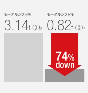 トラック輸送から海上輸送への転換により、月間4.64トン、割合にして74%ものCO2排出量削減に成功している(※算出基準:シャーシ1台につき積載重量約20トン、仙台港発大阪港着で1台あたりCO²排出量は3.14トンから0.82トンまで削減される)事から、環境面での効果は想定通り得られている。