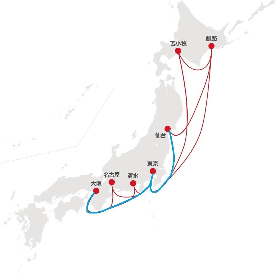 このような背景もあり、2024年3月より、栗林商船グループで陸上輸送を担う栗林運輸株式会社(本社:東京都港区、以下栗林運輸)が、シマダヤ株式会社(本社:東京都渋谷区、以下シマダヤ)から冷凍麺輸送の依頼を受け、従来宮城県内にあるシマダヤの工場から大阪府内の倉庫までの全行程をトラックで陸送していたものを、仙台港から大阪港までRORO船への一部切り替えを行った。
