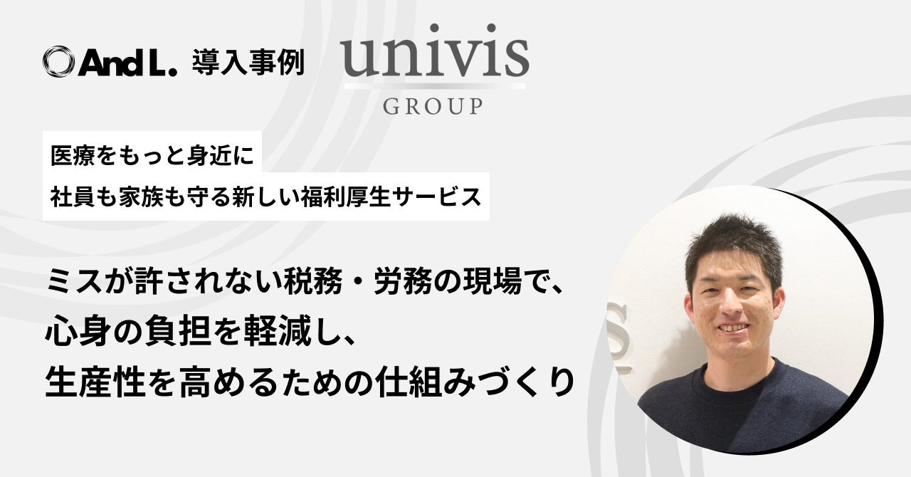 アンドエル株式会社(本社:東京都港区、代表取締役:古橋 智史)は、税理士法人ユニヴィス(本社:東京都文京区、代表:渡邉 広康・森 陽平)に、法人向け健康支援サービス「アンドエルワーク」が導入されたことをお知らせします。