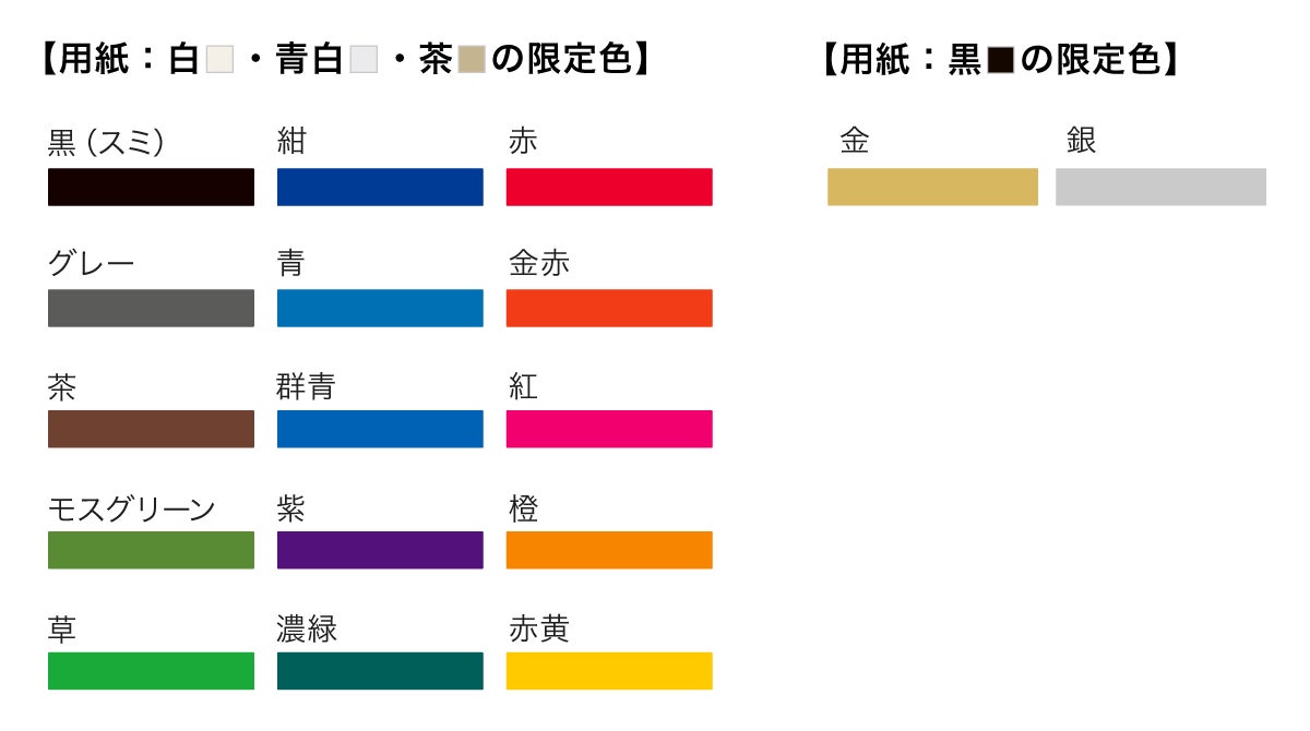 刷り色はそれぞれの用紙の限定色の中から、最大2色までをご選択可能です。