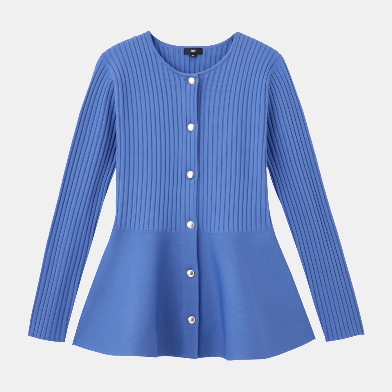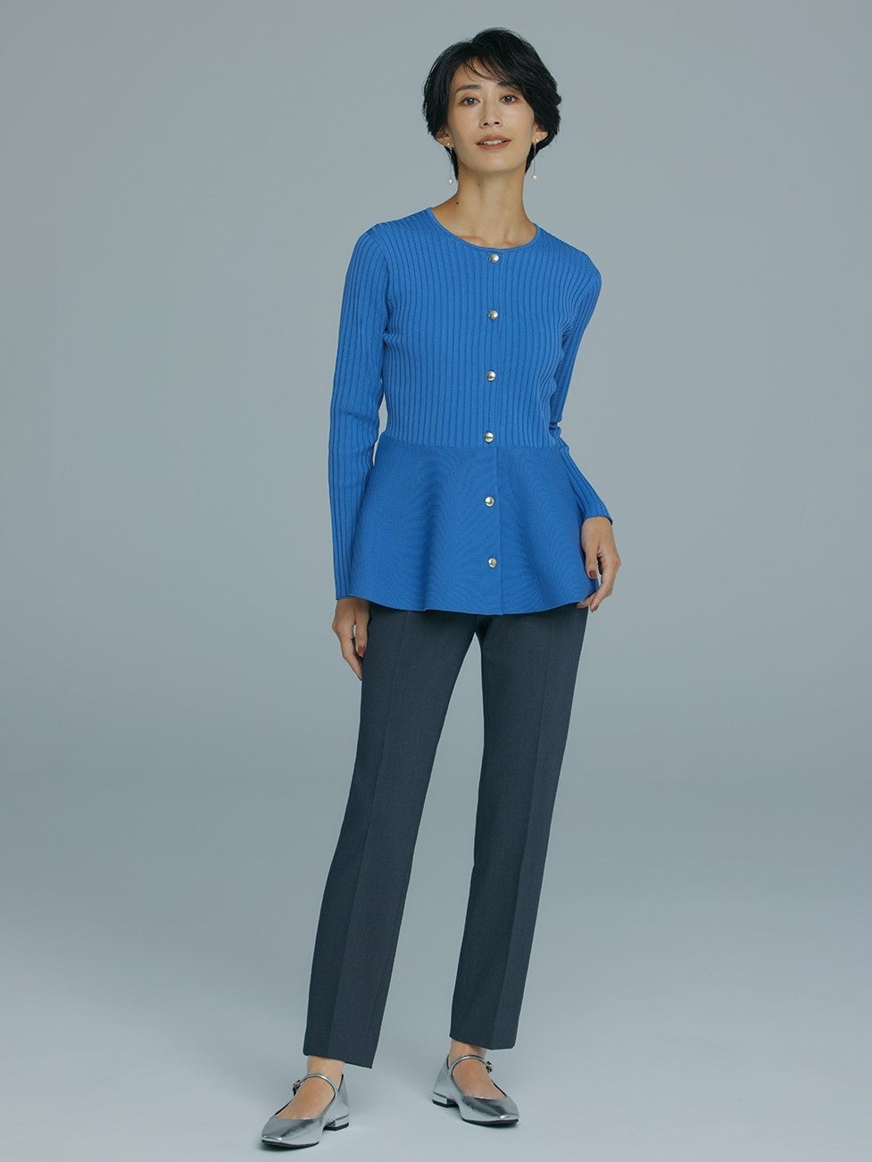 春にも人気の高かったペプラムセーターのデザインを生かした、上品に着られるカーディガンが新たに登場。ペプラム部分は、フレアのボリュームが出すぎないよう調整することで、華やかな印象を持たせつつ自然に腰回りをカバー。ウエスト部分は、体に程よく沿ったコンパクトなシルエットで、スタイルアップを叶えます。