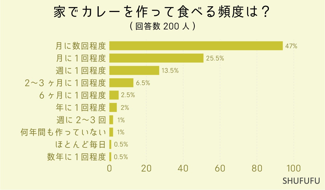 家でカレーを作って食べる頻度では「月に数回程度」と答える方が1番多かったです。