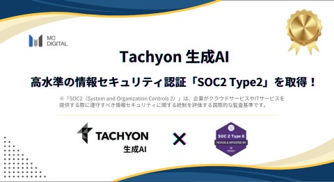法人向け生成AIサービス「Tachyon 生成AI」および共通プラットフォーム「Tachyon Platform」が情報セキュリティ認証「SOC2 Type2」を取得