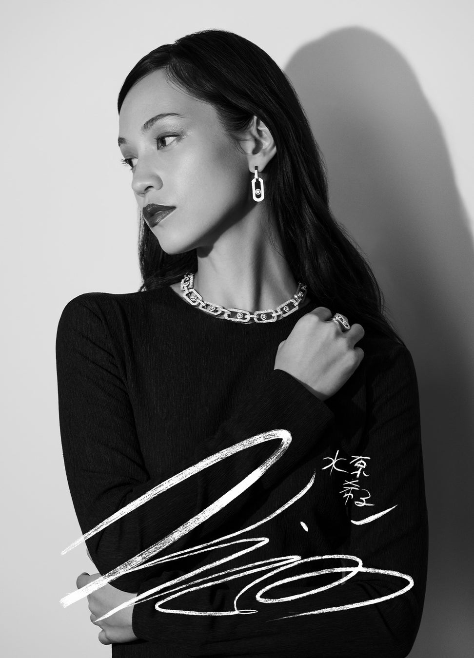 「私が希子に惹かれるのは、その“二面性”です。人を自然に惹きつけるやわらかな魅力と、その奥にある前衛的な強さ。この意外性こそが、彼女の魅力です。彼女がダイヤモンドを纏うと、まるで生まれ持ったもののように自然で、自由に輝く。それこそがメシカのシグネチャーなのです。」