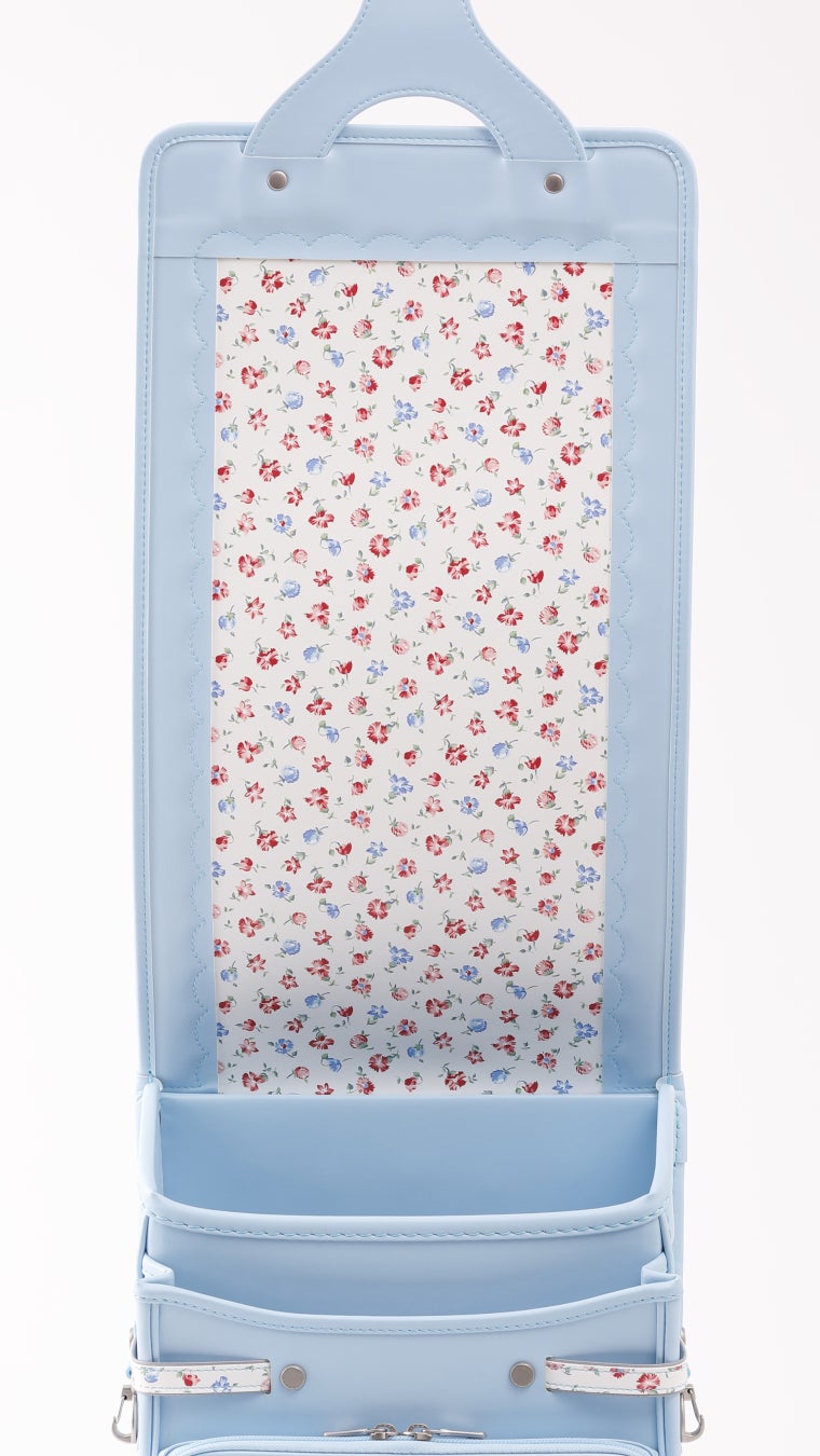 かぶせ裏・マチベルトに花柄のプリントを施しキュートなデザインに仕上げました。