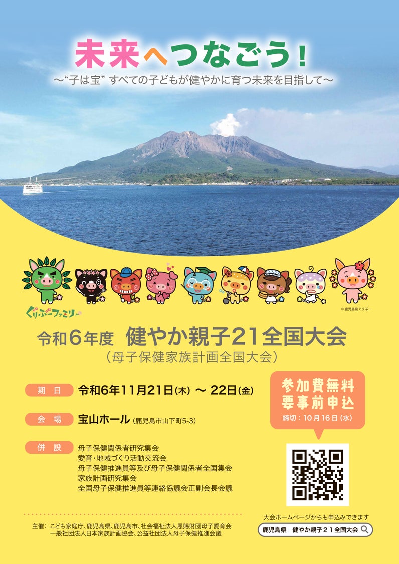 子どもの健やかな成長や母子支援の在り方を探る「健やか親子21全国大会」が11月 21、22日、鹿児島市の宝山ホールで開催されます。
