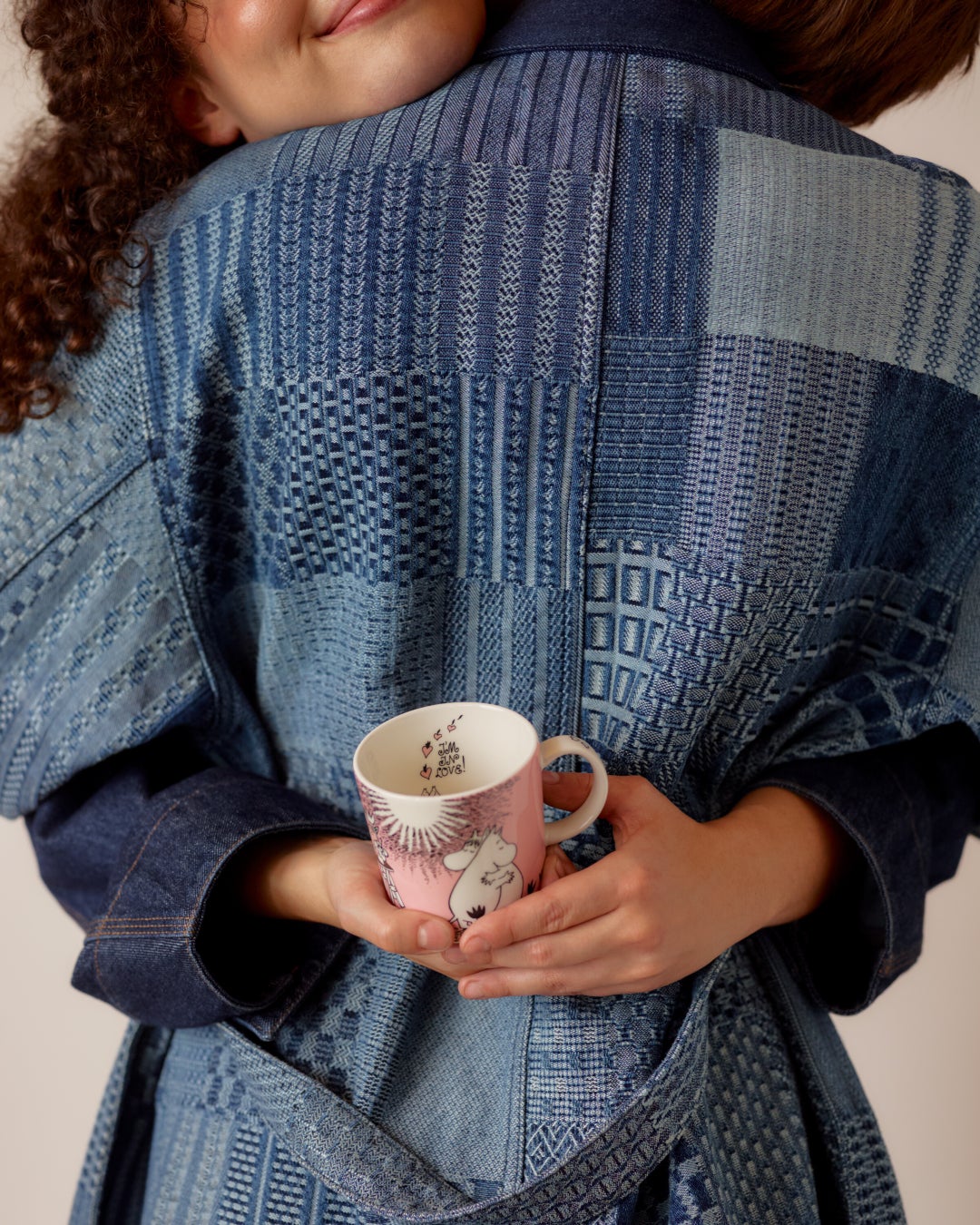 人気のアイテムである0.3リットルサイズのマグは、日常づかいのしやすさと、ピンクを基調とした優しい色合い、そしてムーミンとスノークのおじょうさんが抱き合うシーンを描いた象徴的なデザインで、世界中のファンに愛されてきました。