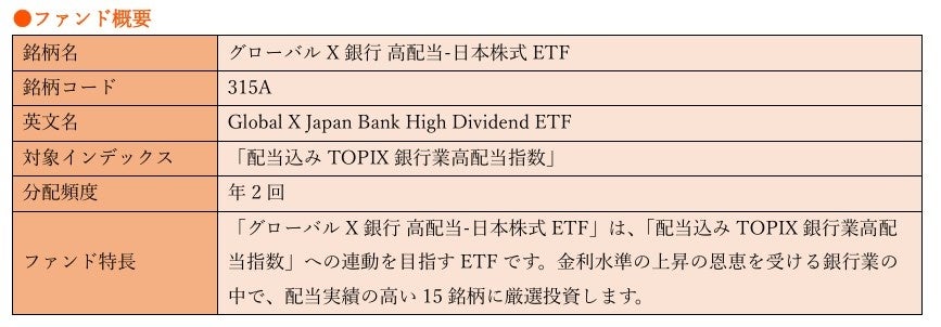 Global X Japan株式会社 「グローバルX 銀行 高配当-日本株式ETF」【315A】東京証券取引所に新規上場
