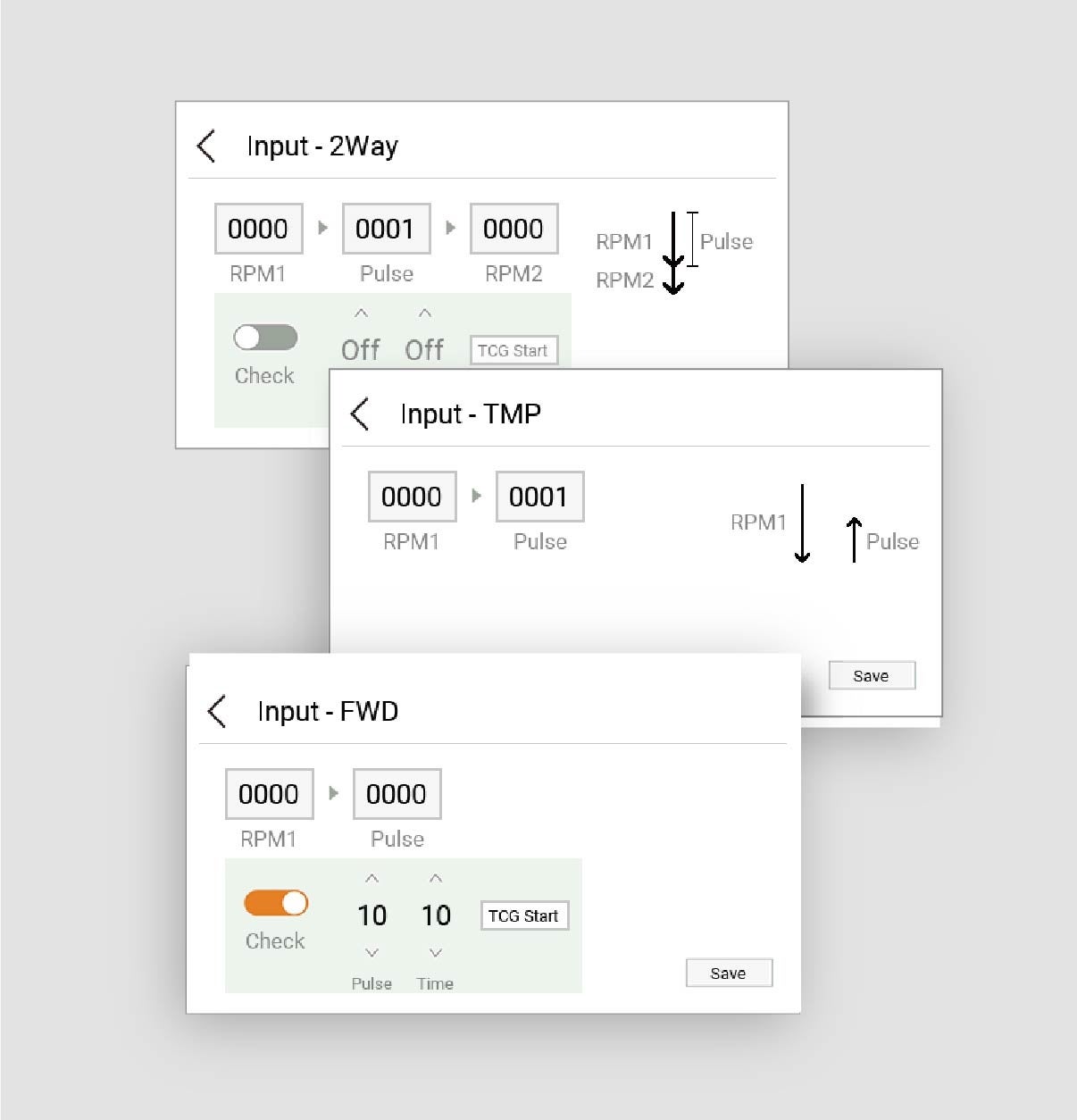 正転・逆転をはじめ、回転数指定の 仮締め、2段階の自動速度可変や、 着座後に指定した回転数分逆転する モードなど、さまざまな用途に対応したモードを搭載。