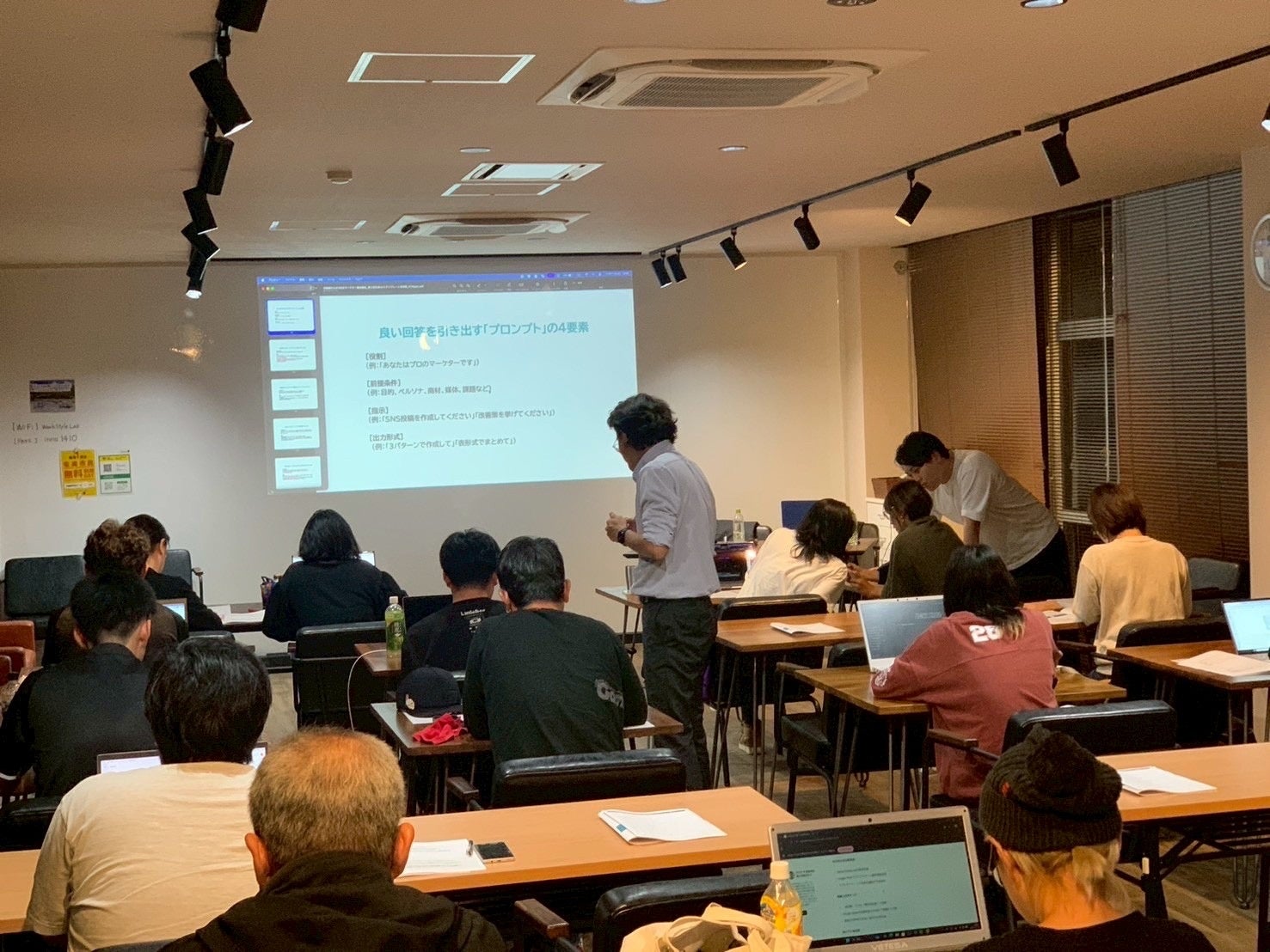 講座では、Webマーケティングにおいて、生成AIを活用して業務を劇的に効率化する手法をレクチャーしました。