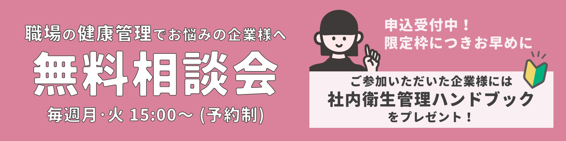 2025年5月19日より、職場の健康管理で悩む企業担当者向けに、社内衛生管理に関する予約制の無料相談会を開催しています。
