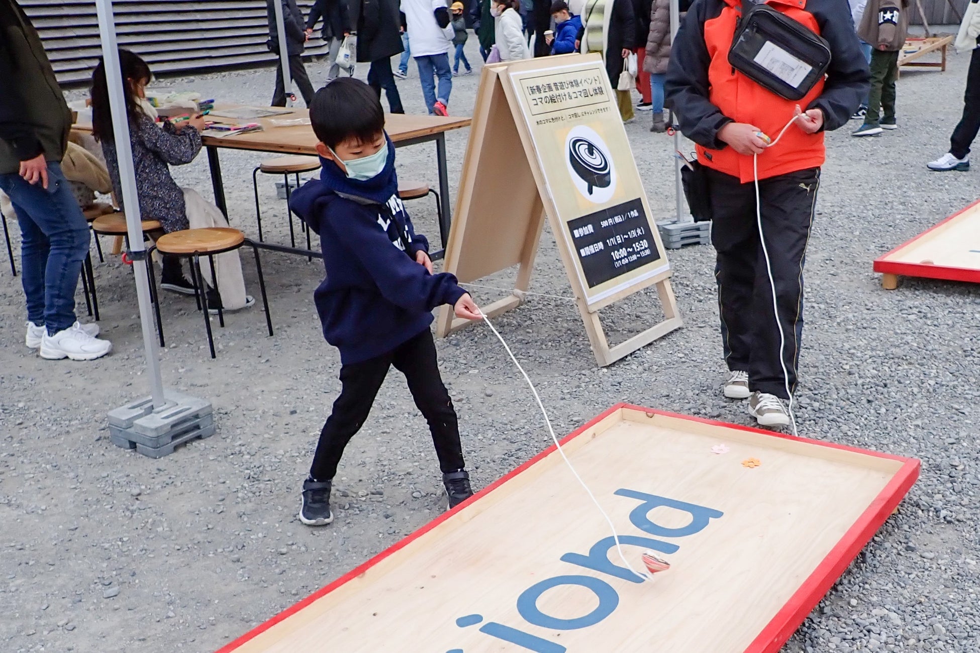 木材を回転させる機械「木工旋盤」にセットした木製ゴマにペンを当てて絵付けができる体験です。なかなか触る機会のない木工旋盤を手軽に体験できるチャンス!絵付け後にはすぐコマ回しもできます。コマ回しは、コマの回る音が悪霊を追い払うと考えられており、縁起の良い昔ながらのお正月遊びです。