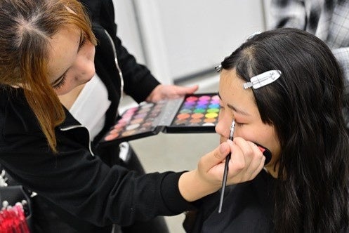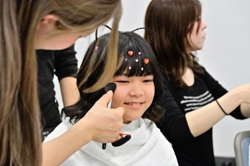 ヘアメイク体験では、ショーという限られた時間の中、プロの技術で一気に華やかな雰囲気に変身していく姿はまるで魔法のようでした。