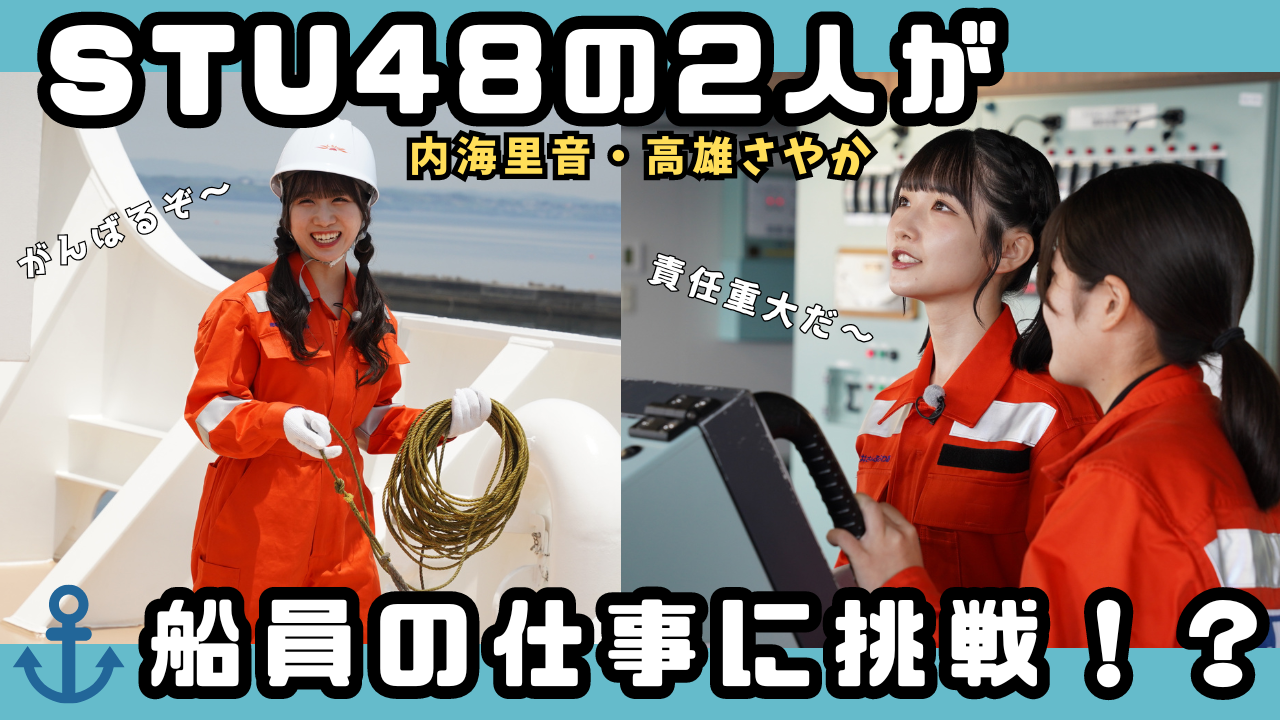 「C to Seaプロジェクト」のアンバサダーを務めるSTU48(註)の内海里音さん、高雄さやかさんが当社大阪~別府航路の「さんふらわあ くれない」に乗船し、船員の仕事体験や船員へのインタビュー取材を行いました。動画内では、船内での体験を通して内海さんと高雄さんが船員の仕事の魅力をお伝えしています。ぜひ動画をご視聴ください。