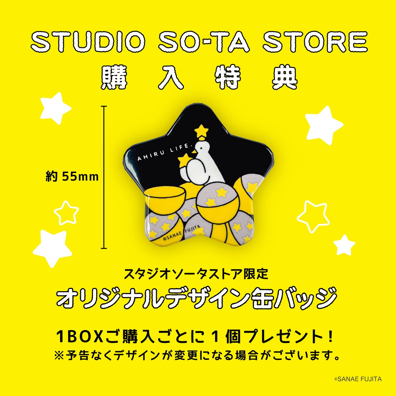 玩具メーカーのスタジオソータ(本社:東京都渋谷区、代表:安藤こうじ)は、SANAE FUJITA×スタジオソータ「AHIRU LIFE.2 Figure Mascot」 (ボックストイ 550円(税込))を、販売いたします。2025年1月下旬発売予定となります。ボックストイは、予約受付を開始 (スタジオソータストア (https://store.so-ta.com/ ) しております。