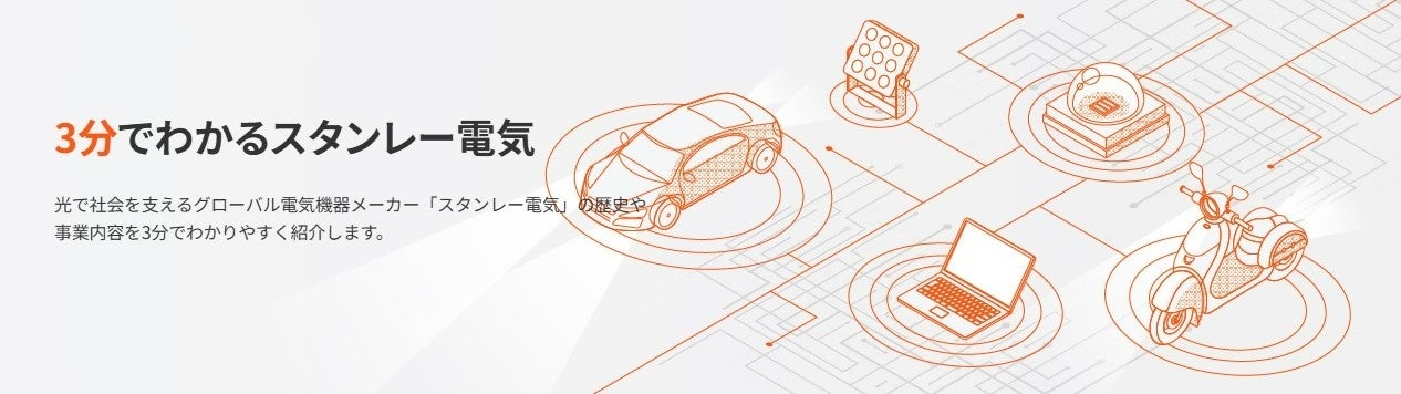 「3分でわかるスタンレー電気」「事業紹介」などのコンテンツを新たに設置。