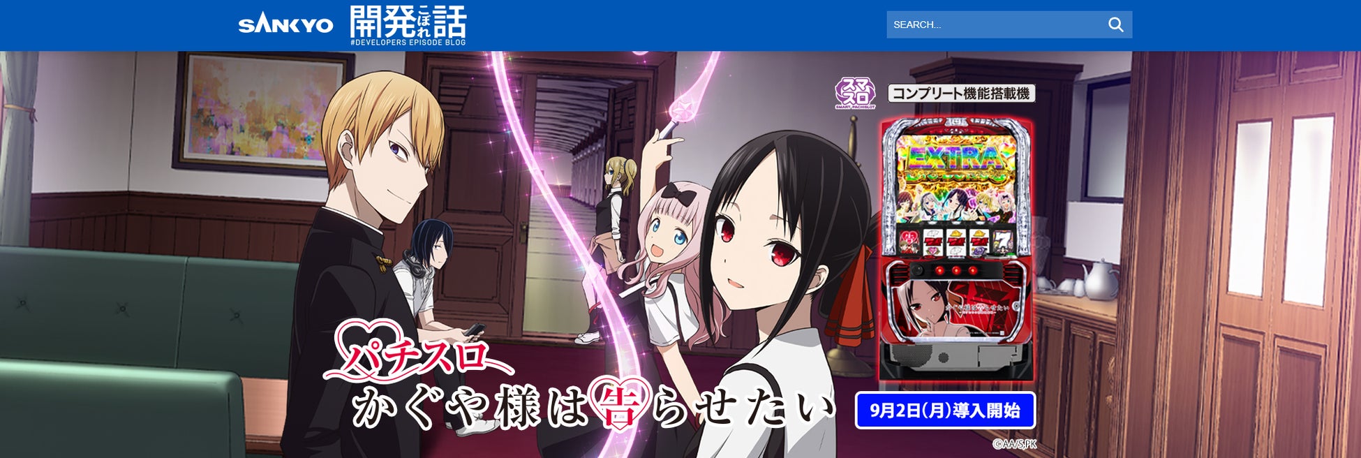 SANKYO「開発こぼれ話」で最初に紹介するパチスロ機は、9月2日(月)に導入予定の『Lパチスロ かぐや様は告らせたい』です!