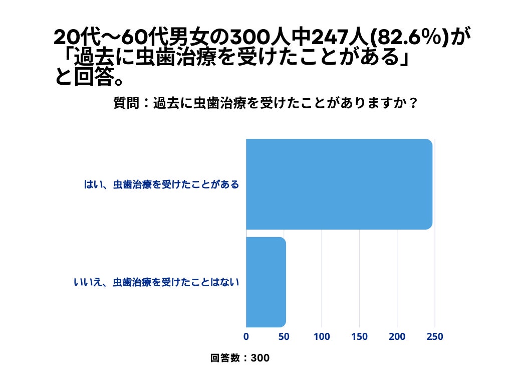 20~60代男女の82.3%が、「過去に虫歯治療を受けたことがある」と回答。【虫歯治療に関するアンケート】