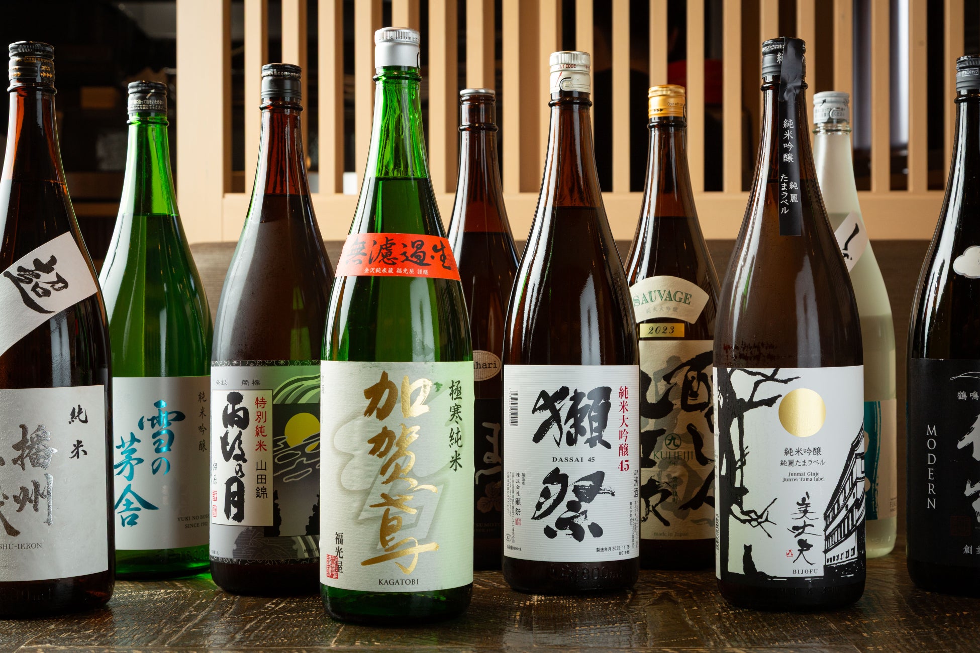 魚料理を引き立てる日本酒を、全国より選りすぐって取り揃えています。豊富な種類の中から、好みの一杯をぜひ見つけてください!