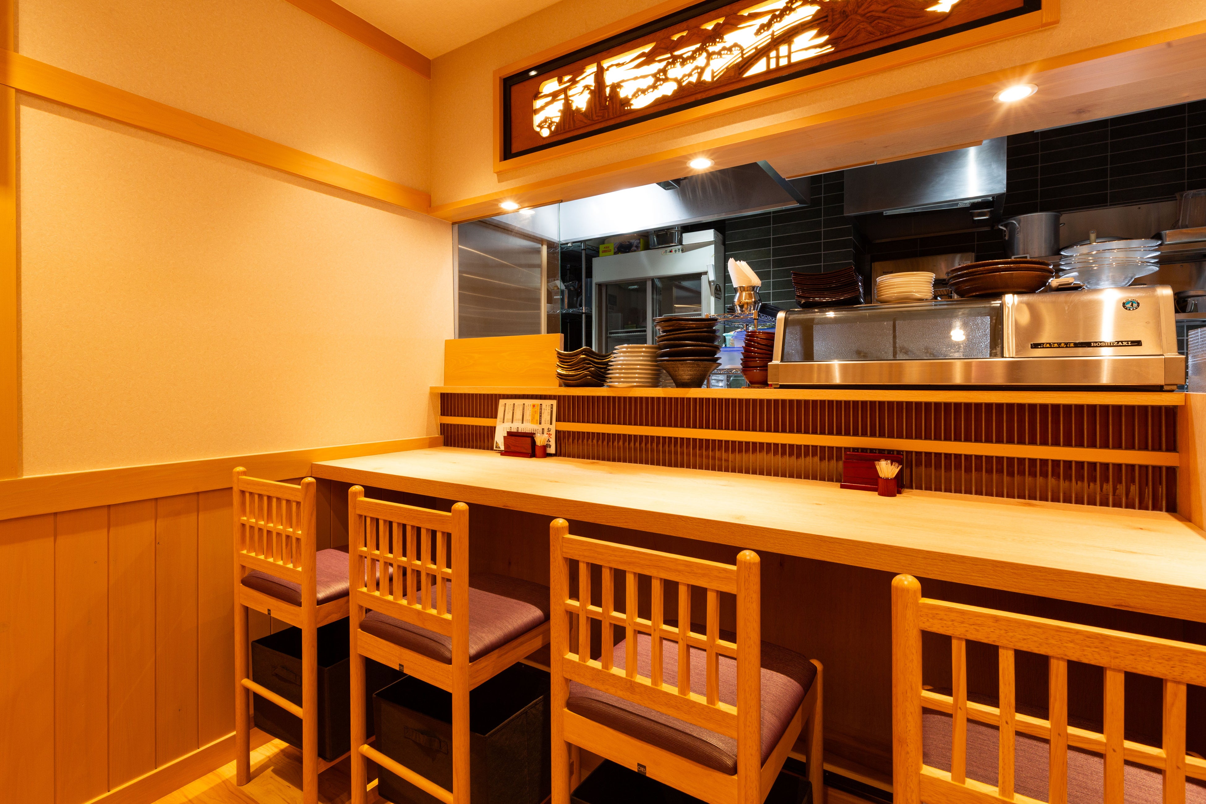 店内は和モダンで統一されており、カウンター席のお一人様からご宴会まで幅広く対応しております。ぜひお気軽にお越しください。