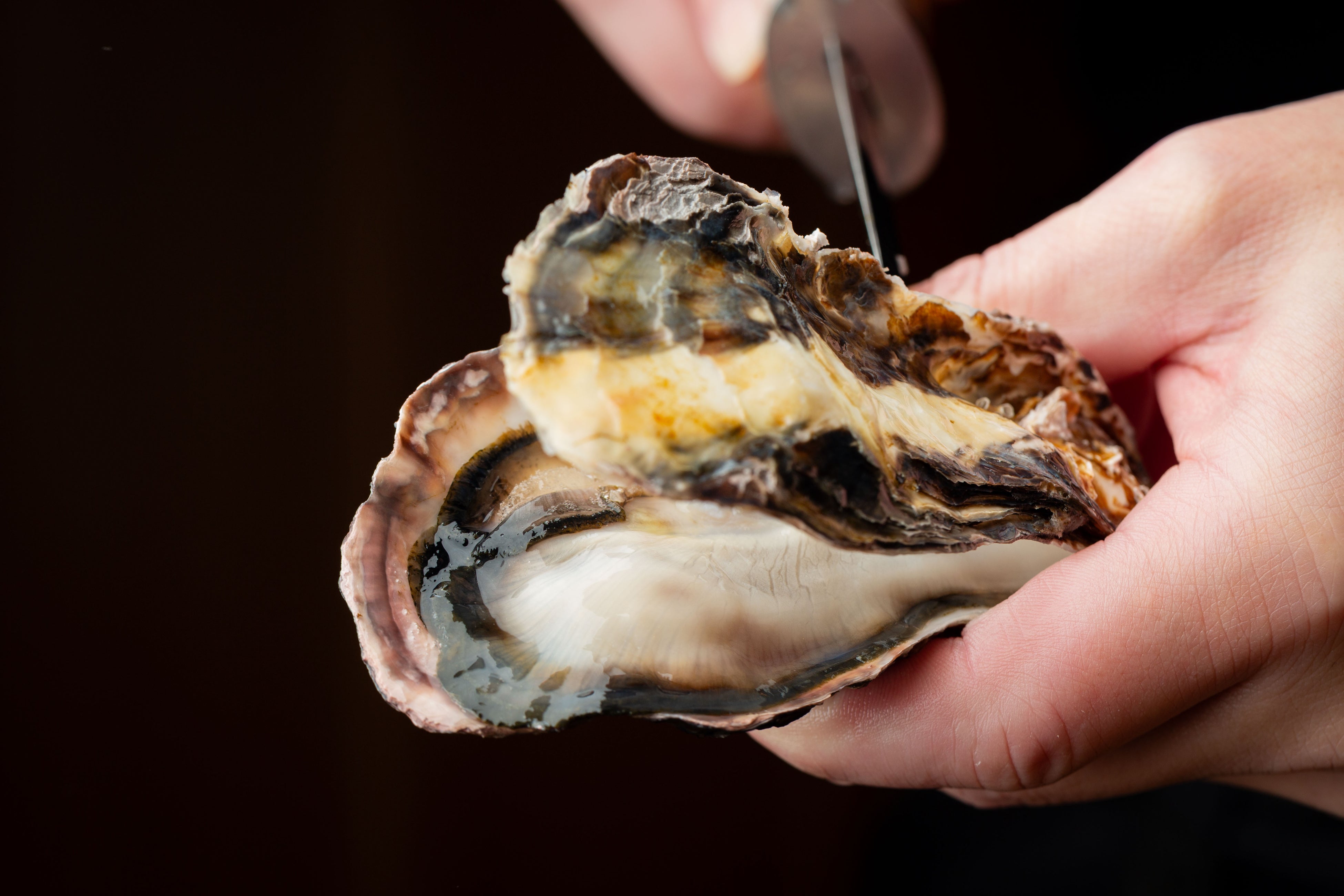 中でも赤穂市坂越から直送の牡蠣は、特有の生臭さがなく、磯の風味がしっかりと凝縮した味わいです。貝柱の部分には甘みがあり、身の部分にははちきれんばかりにジューシーなエキスが詰まっています。