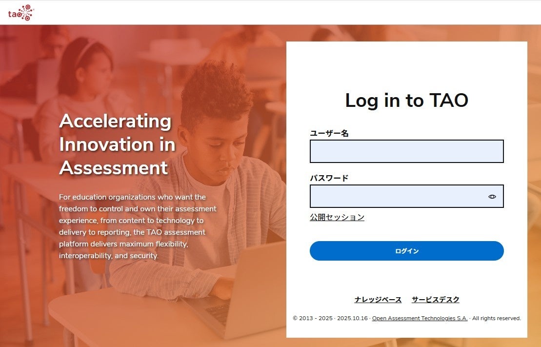 2025年に実施されたOECD「生徒の学習到達度調査(PISA(ピザ))」では、プラットフォームとして次世代版が採用され、106の国と地域での実運用において大きな成果を上げました。今後も次世代版「TAO」の普及を通じて、すべての学習者が公平に試験に臨める環境の実現を世界で推進してまいります。