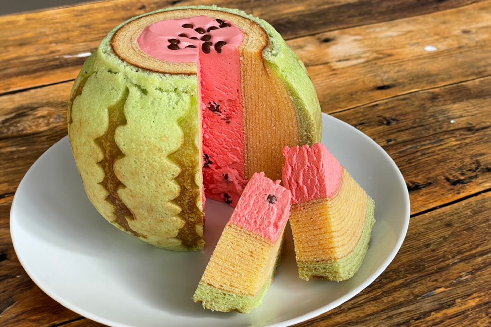 ■ まるで本物!? 見た目はスイカ、中身はバウムクーヘン