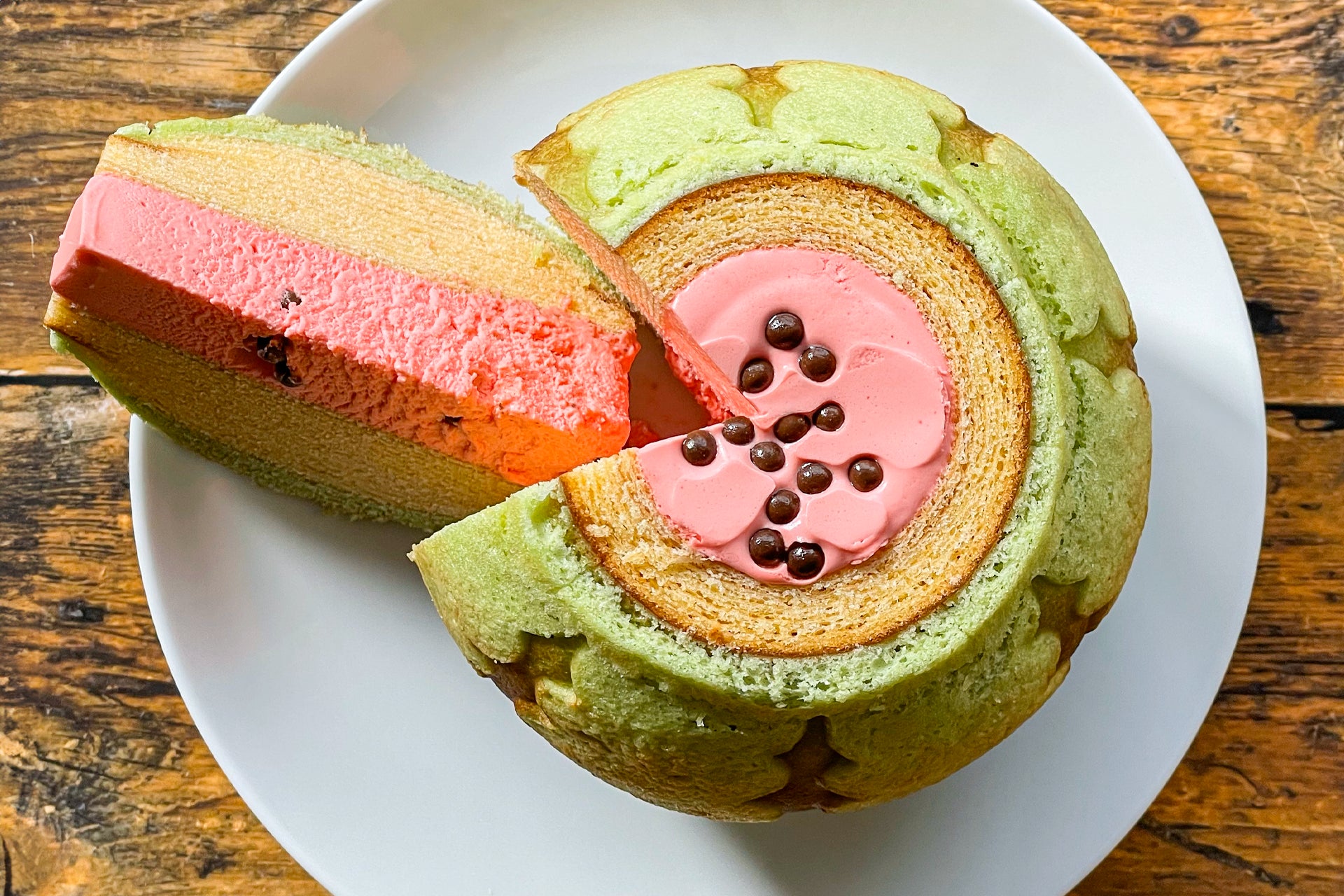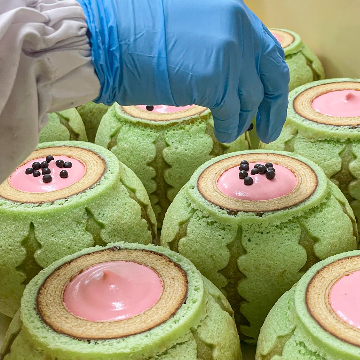 思わず二度見してしまうほどリアルなスイカのビジュアルと、もっちり・しっとりの米粉バウムの本格派の味わいが融合した、今最も“話題を呼ぶスイーツ”です。