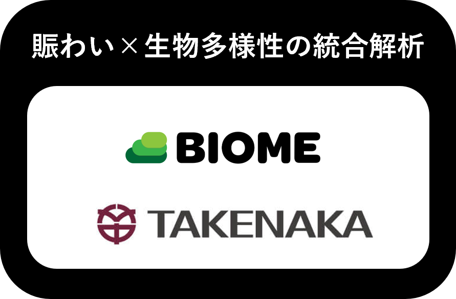 プロジェクト概要:バイオームが保有する生物分布ビッグデータとエコロジカルネットワーク解析、竹中工務店が持つ人流解析や都市環境の知見を組み合わせ、都市の「賑わい」と「生物多様性」を統合的に可視化・解析。データに基づき、人と生きものの双方が恩恵を享受できる都市緑地の設計指針の確立を目指すプロジェクト。