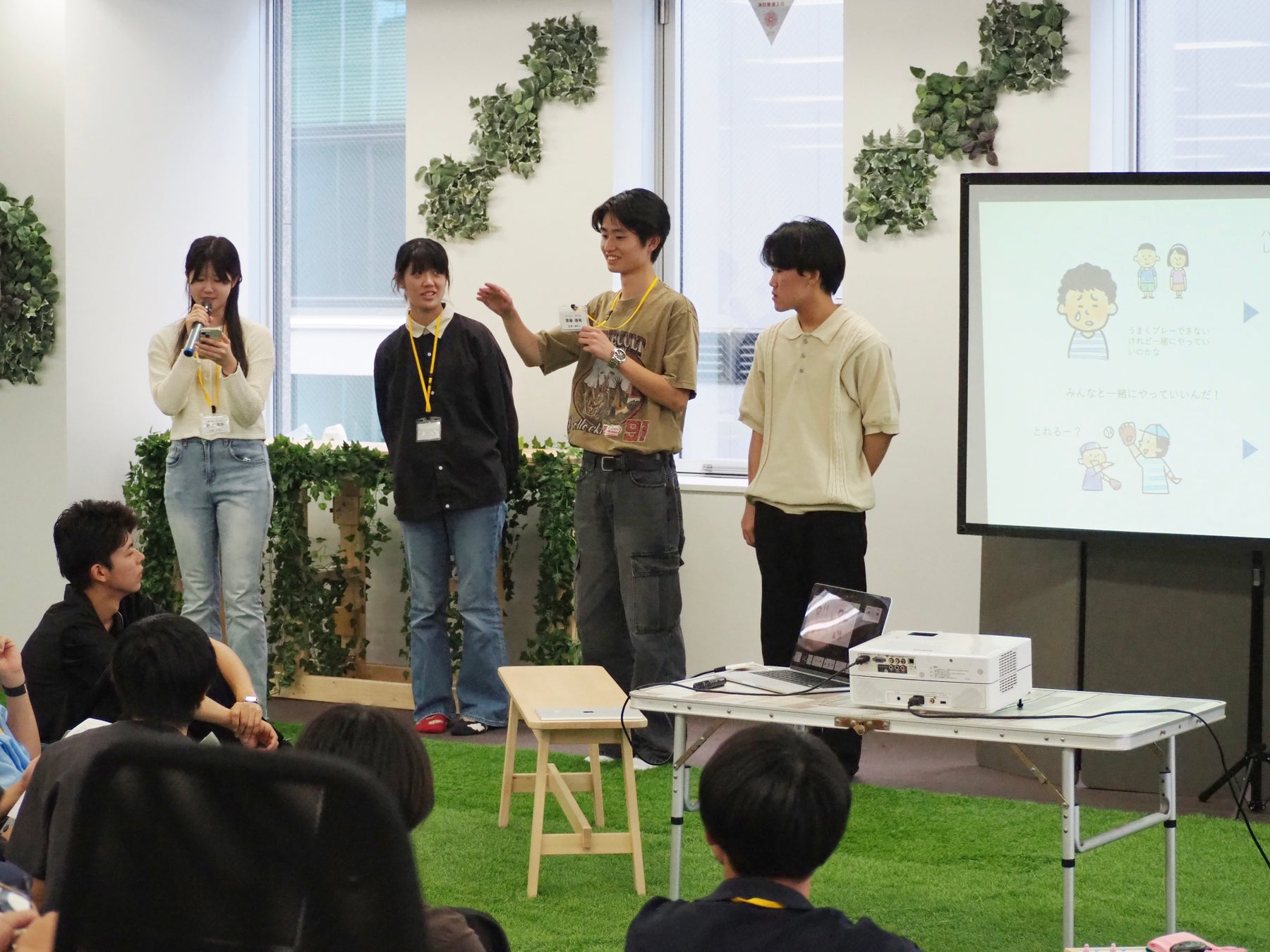 内容 :biima sportsのレッスン見学や社員へのインタビューを行い、子どもたちが運動を通して自己肯定感を高めるためのデザイン考えプレゼンテーションを行う
