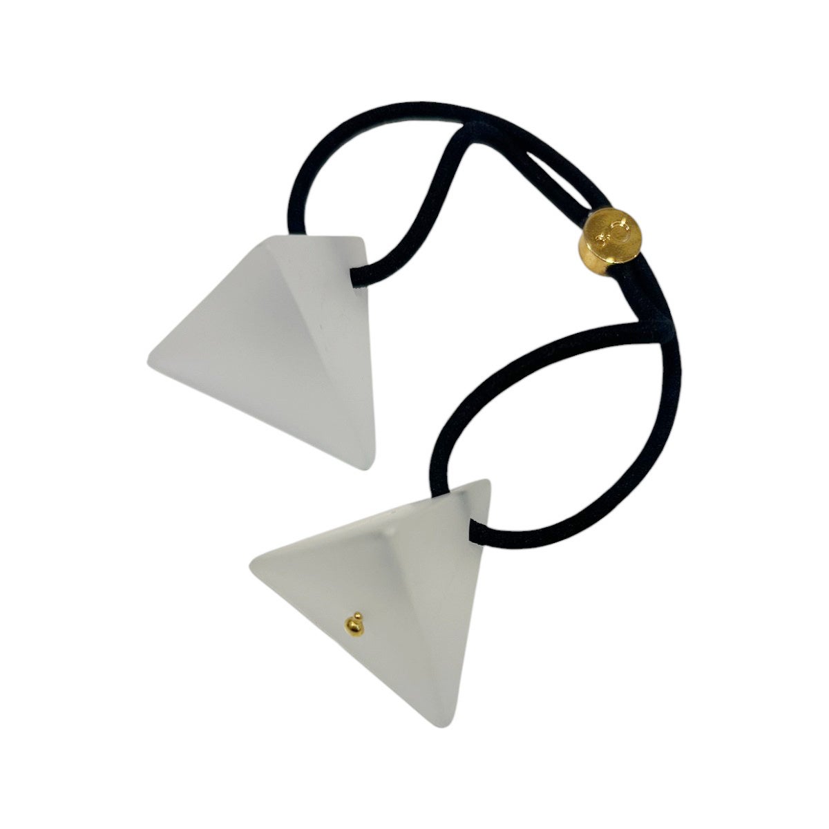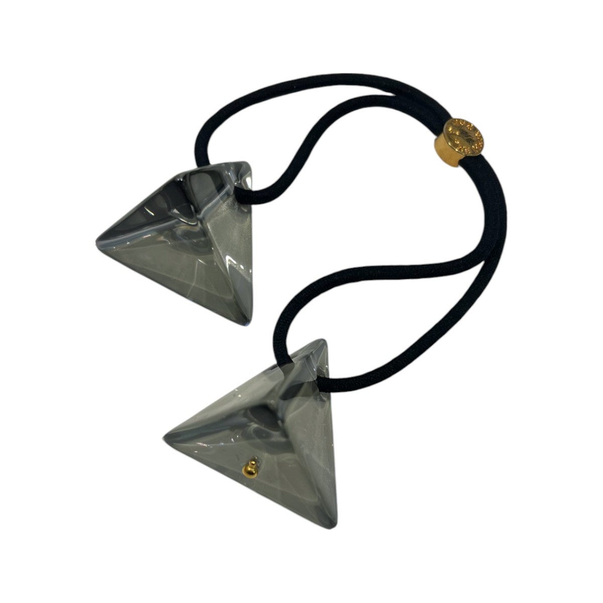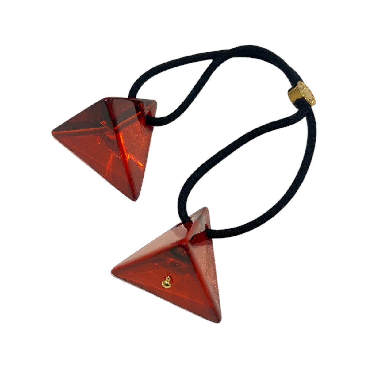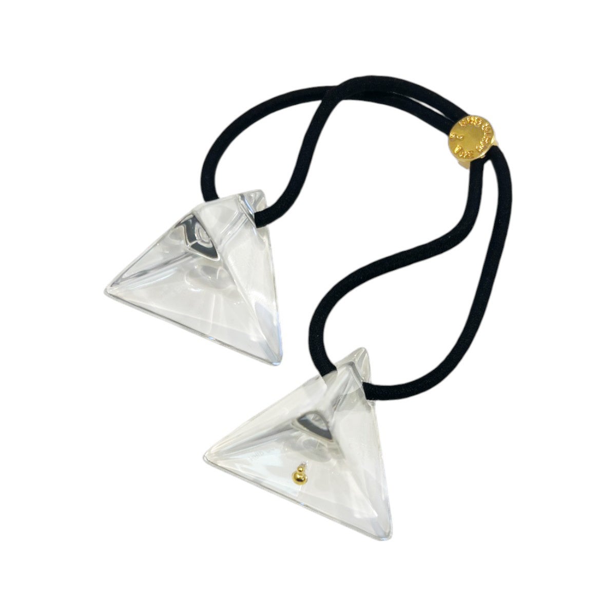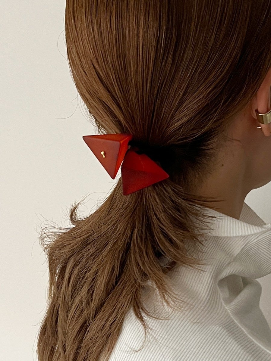 <THE HAIR BAR TOKYO>オリジナルのピラミッドポニー。シンプルにして大胆、エッジーなモチーフは何気ないスタイルもモードにグレードアップさせます。今季はクリア、レッド、スモークの3色をフロステッドとクリアの各2バージョンで展開、計6色をラインナップ。光を受けてプリズムのような輝きを求めるならクリア、シックにダークカラーの髪に添えるならフロステッドがおすすめです。テクニックが不要なポニーというアイテムでアレンジの多様性を大いに楽しめます。2つのオーナメントを重ねて結ぶベーシックなポニーテールのほか、シニヨンの周りをラッピングしたり、ループを分けて結ぶバブルポニーを楽しんでみたり、スタイリング初心者から上級者までそれぞれのセンスが光る“fun item”です。