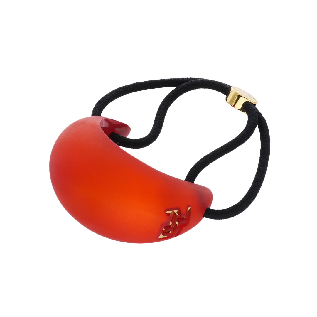THBTオリジナルのオーバル型ルーサイトポニー。丸みのあるオーナメントがリングのように毛束をつつみ、髪にぴったりと馴染みます。ヘアゴムとは思えない端正なシルエットで内側のペイントと表面のフロステッド加工により、中からほんのりと灯りがともるような不思議な光の効果を楽しめます。鮮明な赤ですが、シックでモノトーンな装いの差し色としては最適です。このオーナメントの美しさが際立つのは横からのアングル。計算されつくしたフォルムを感じていただけると思います。「RED」の他にマットクリア・ブラックもございます。
