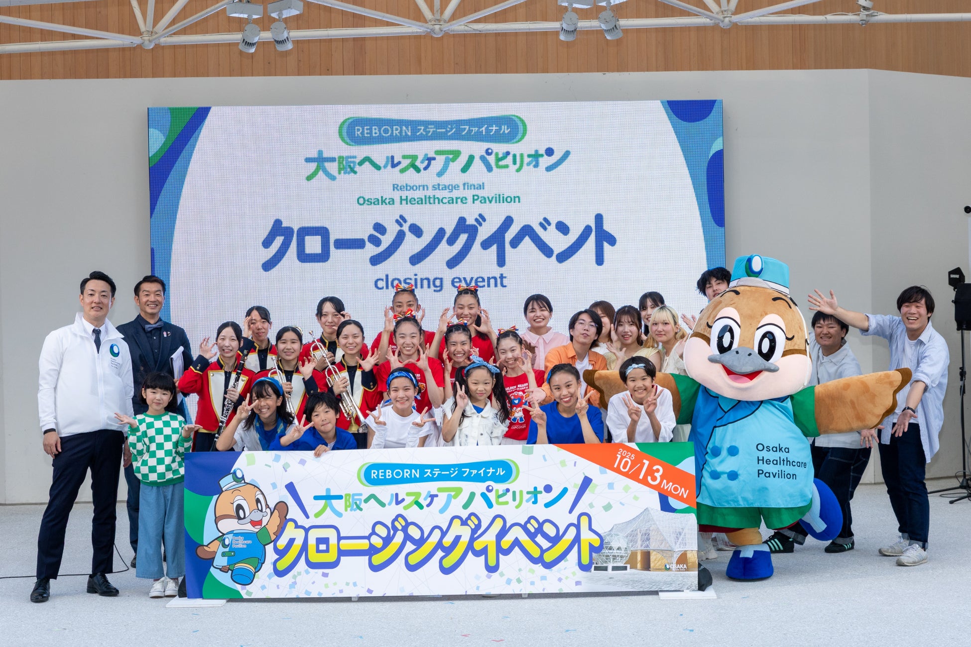 クロージングイベント第1部では、 以下吉村知事、横山市長、昨年大阪ヘルスケアパビリオンのイベントで「カラダ測定ポッド」を体験した永尾柚乃さんが再び登場。「子どもたちがミライを創る」をテーマに、トップバッターの永尾柚乃さんが元気いっぱいに大阪・関西万博オフィシャルテーマソング「この地球の続きを」のダンスパフォーマンス披露したほか、箕面自由学園高等学校吹奏楽・チアリーダー部、大阪公立大学アカペラチームが歌や踊り、音楽でステージを盛り上げました。