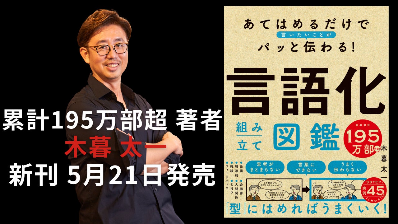 2025年5月21日(水)、累計195万部超のベストセラーを持つ言語化コンサルタント・木暮太一が、新刊『あてはめるだけで言いたいことがパッと伝わる! 言語化組み立て図鑑』(SBクリエイティブ)を発売します。