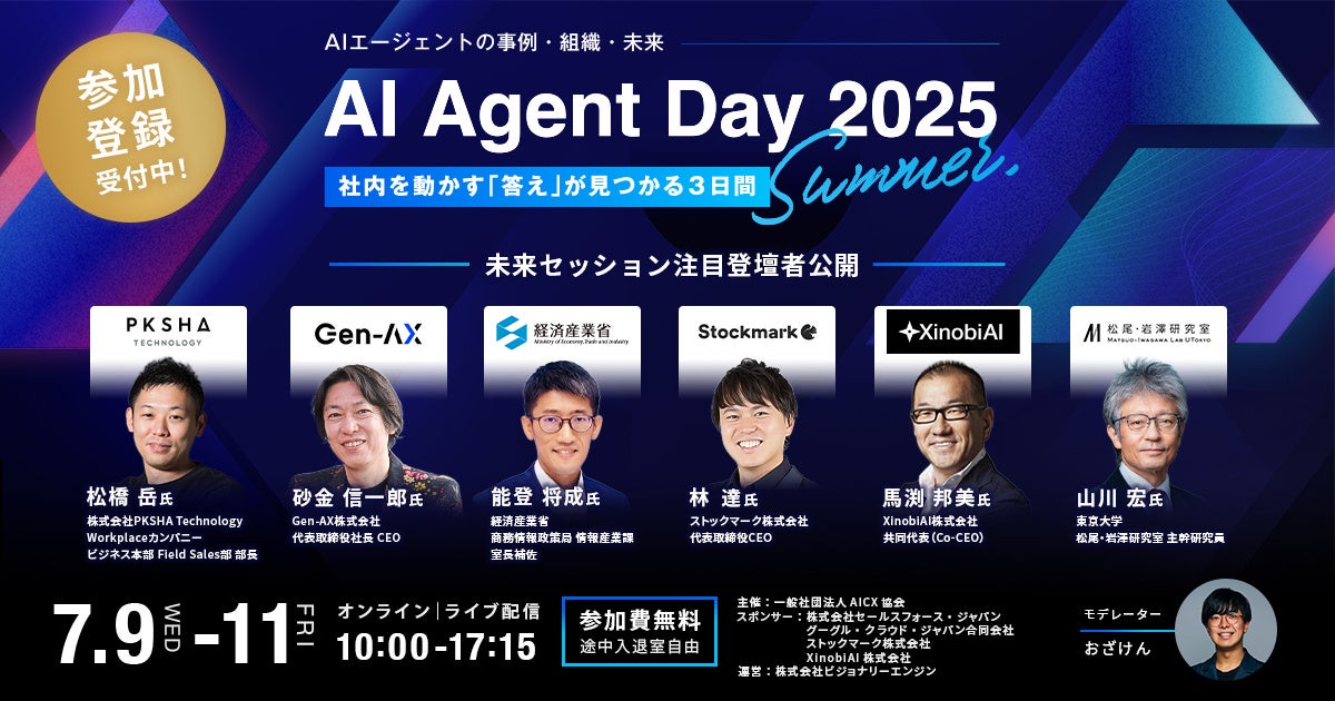 「AI Agent Day 2025 Summer」業界トップランナーらがAIエージェントの〈未来〉をテーマにしたセッションに登壇|7/9(水)~11(金)