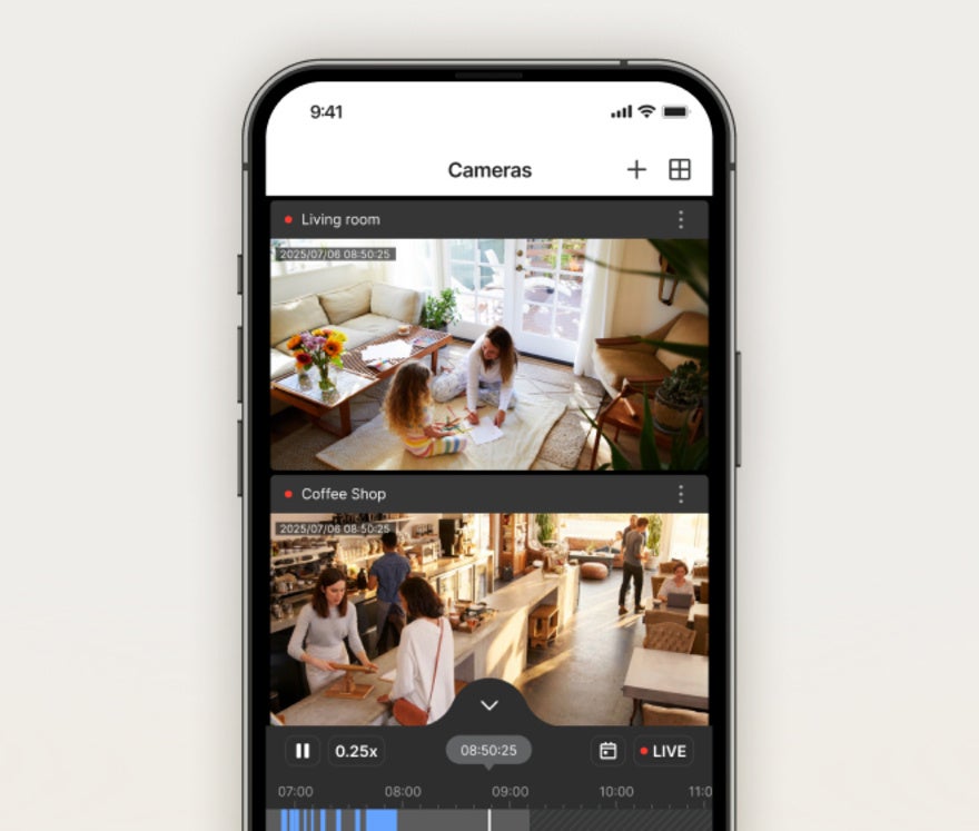 この監視体験は、大切な家族やペットを見守りたいご家庭や、継続的な料金なしでシンプルかつ信頼性の高い監視を求める小規模店舗・マイクロビジネスに最適です。ユーザーは最大8人までカメラアクセスを共有でき、ライブ映像の閲覧、通知の受信、イベントの確認が可能です。*