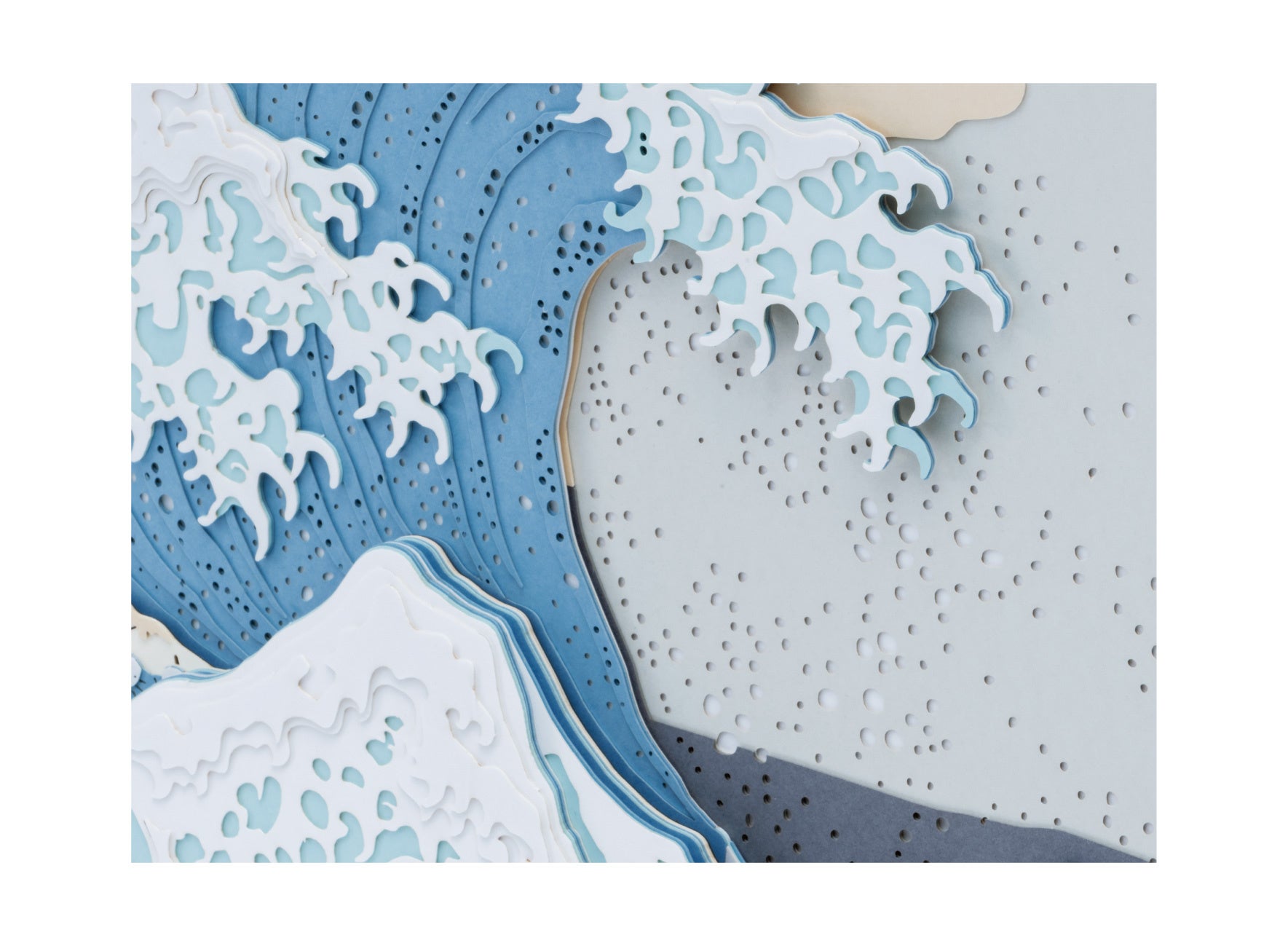 ■飛び出るような迫力のある波を表現、日本の名画が奥行きある半立体的な作品に