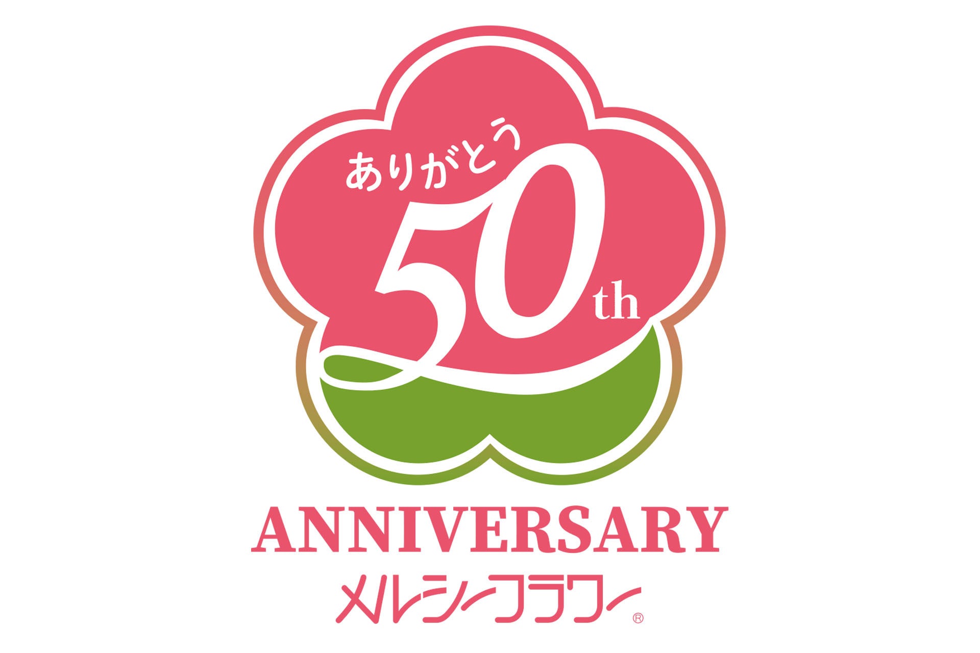 記念ロゴは、50周年を意識した5枚の花びらと社名に合わせて『ありがとう』の言葉をあしらったデザインしました。