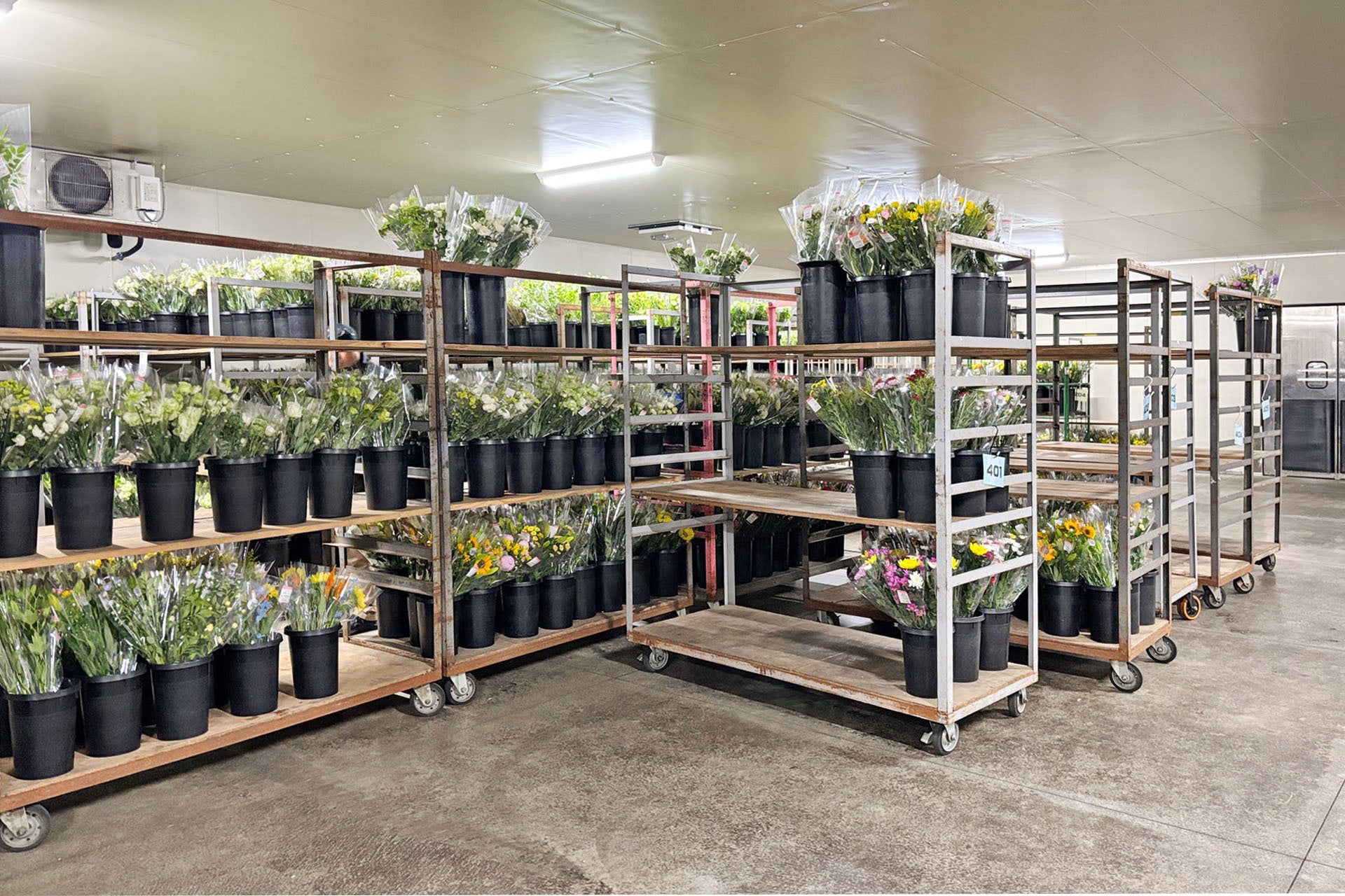 90年代半ばになってくると、多くのスーパーマーケットで花をセルフで販売する風潮が高まってきました。しかしながら、花という嗜好品(好き嫌いが激しくロスになりやすい)を自社で扱うことにノウハウのない企業が多く、メルシーフラワーの花のセルフ(委託)販売という仕組みは、そういった多くの企業の賛同を得て一気に取引先を増やすこととなりました。その後は取引先の拡大とともに、平成7年(1995年)に神奈川センターを開設、平成12年(2000年)には埼玉センターを開設、そして平成25年(2013年)には千葉センターを開設し、花束製造のキャパシティ拡大ときめ細かな物流網を構築することで、首都圏で650店舗超のスーパーマーケットとお取引をさせていただくこととなり、毎日3万人近いお客様にご購入いただけるようになりました。