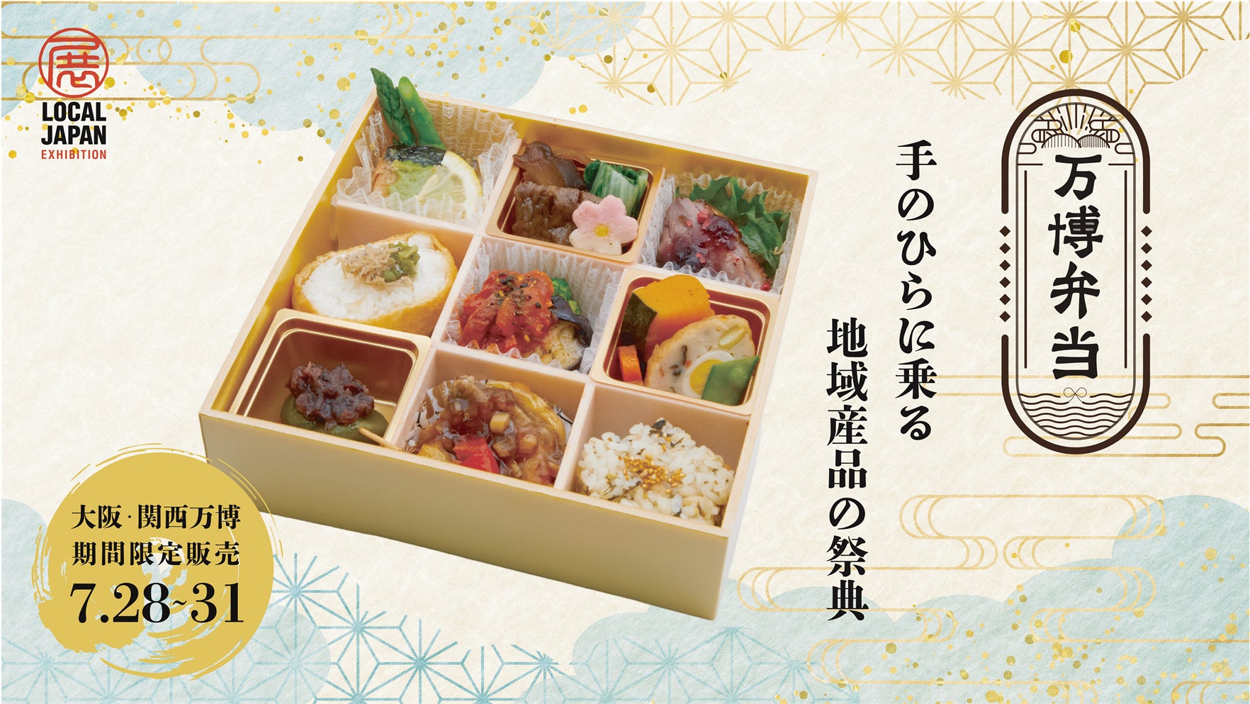 大阪・関西万博で 2025年7月28日(月)から7月31日(木)まで開催される「Resolution of LOCAL JAPAN 展 〜地域が創る日本と地球のいのち輝く未来〜」では、全国各地の自治体が誇る食材をふんだんに使った「万博弁当」を、期間限定で販売します。一折に込められているのは、まさに“地域産品の祭典”と呼ぶにふさわしい、各地の生産者たちが込める真心(いのち輝く食のストーリーと技術)です。