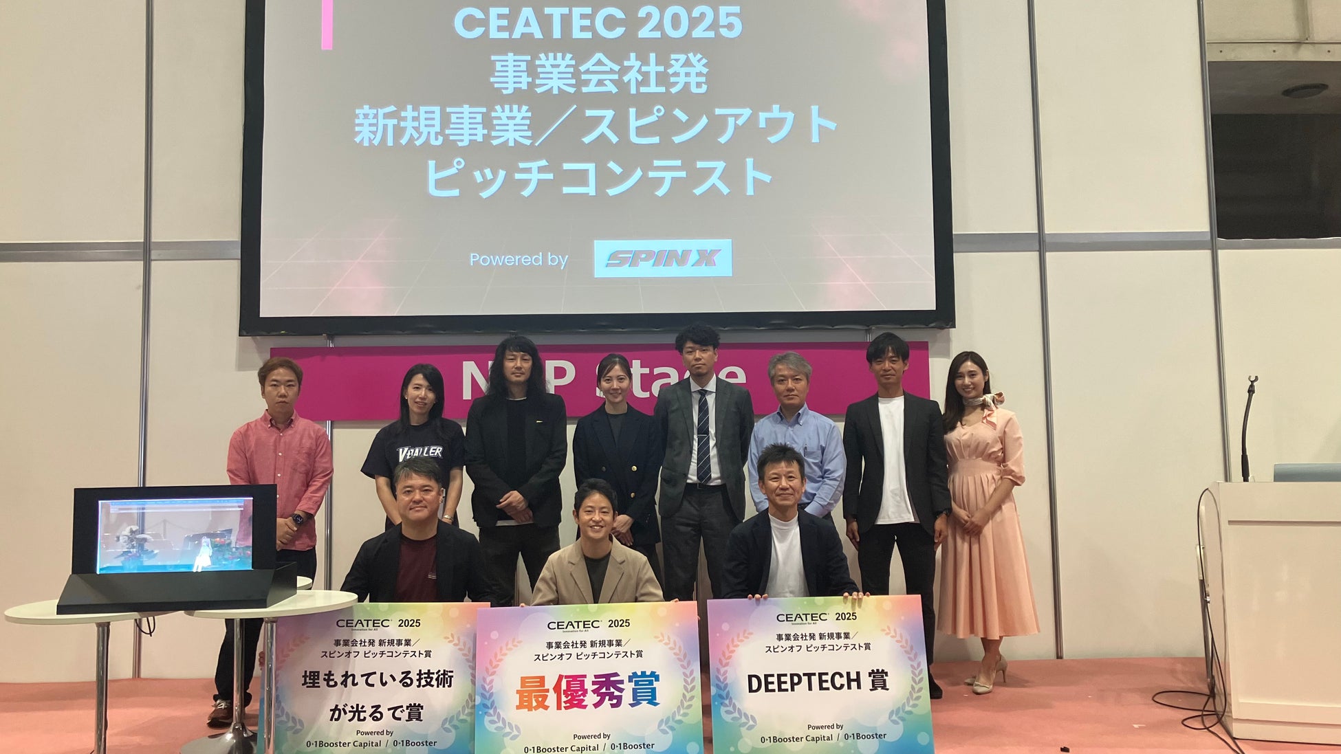 SPINX(運営:01Booster Capital)は10月17日、CEATEC 2025で企業発の新規事業・スピンオフのピッチイベントを実施し、来場者のオンライン投票により3賞を授与しました。