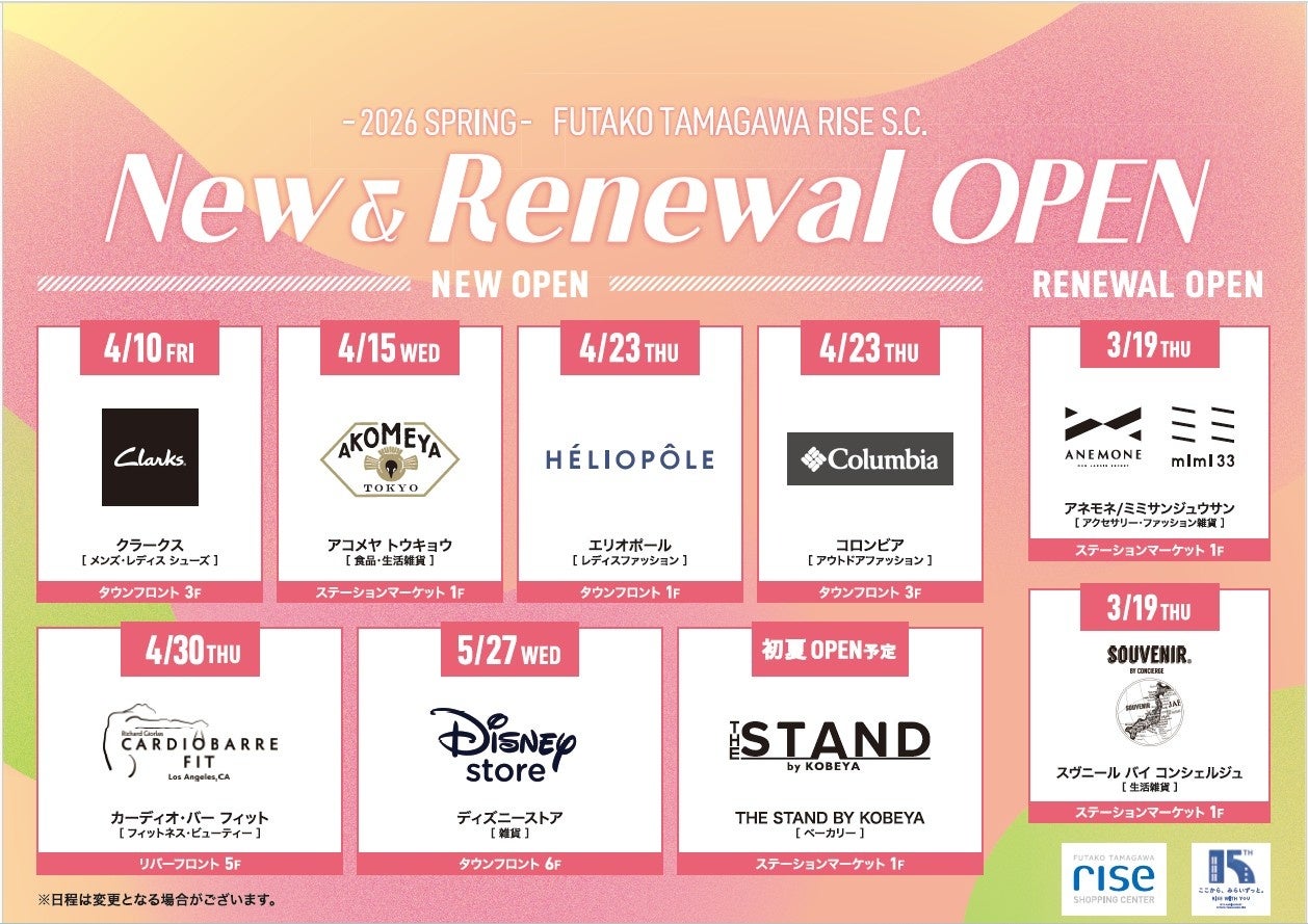 今年、開業15周年を迎えた二子玉川ライズ・ショッピングセンター(以下、「二子玉川ライズ S.C.」、東京都世田谷区、総支配人 大木さゆみ)では、2026年春、新店舗のオープンおよび既存店の店舗リニューアルを実施します。