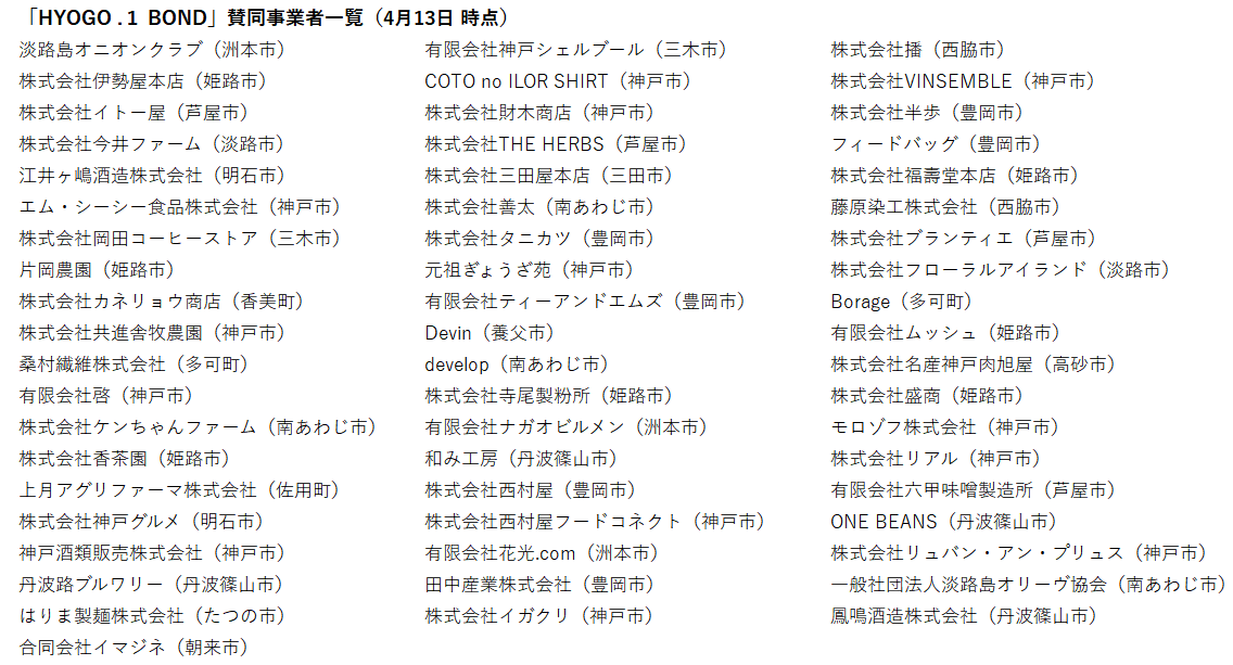 株式会社HAQTSUYA(代表企業)が運営する「ひょうごHAQTSUプロジェクト」は、兵庫県内のふるさと納税返礼品事業者の有志と共に、寄附額の0.1%を被災地へ届ける支援活動「HYOGO.1 BOND(ひょうごポイントワンボンド)」を推進しています 。