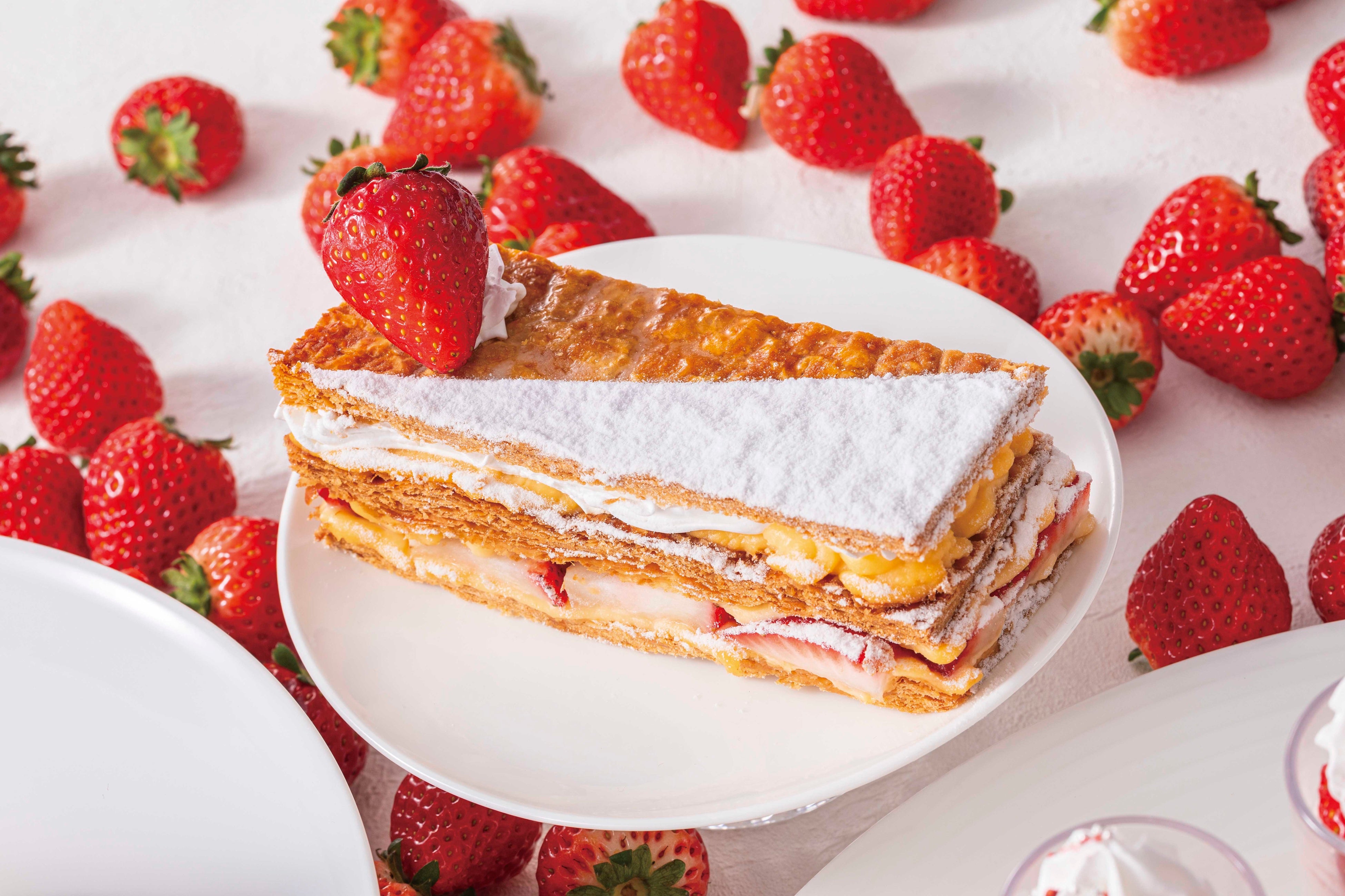 さらに、フランスで親しまれる焼きプリンのような伝統菓子をアレンジした「いちごのファーブルトン」も登場。もっちりとした生地に、甘酸っぱい果実の風味が広がります。