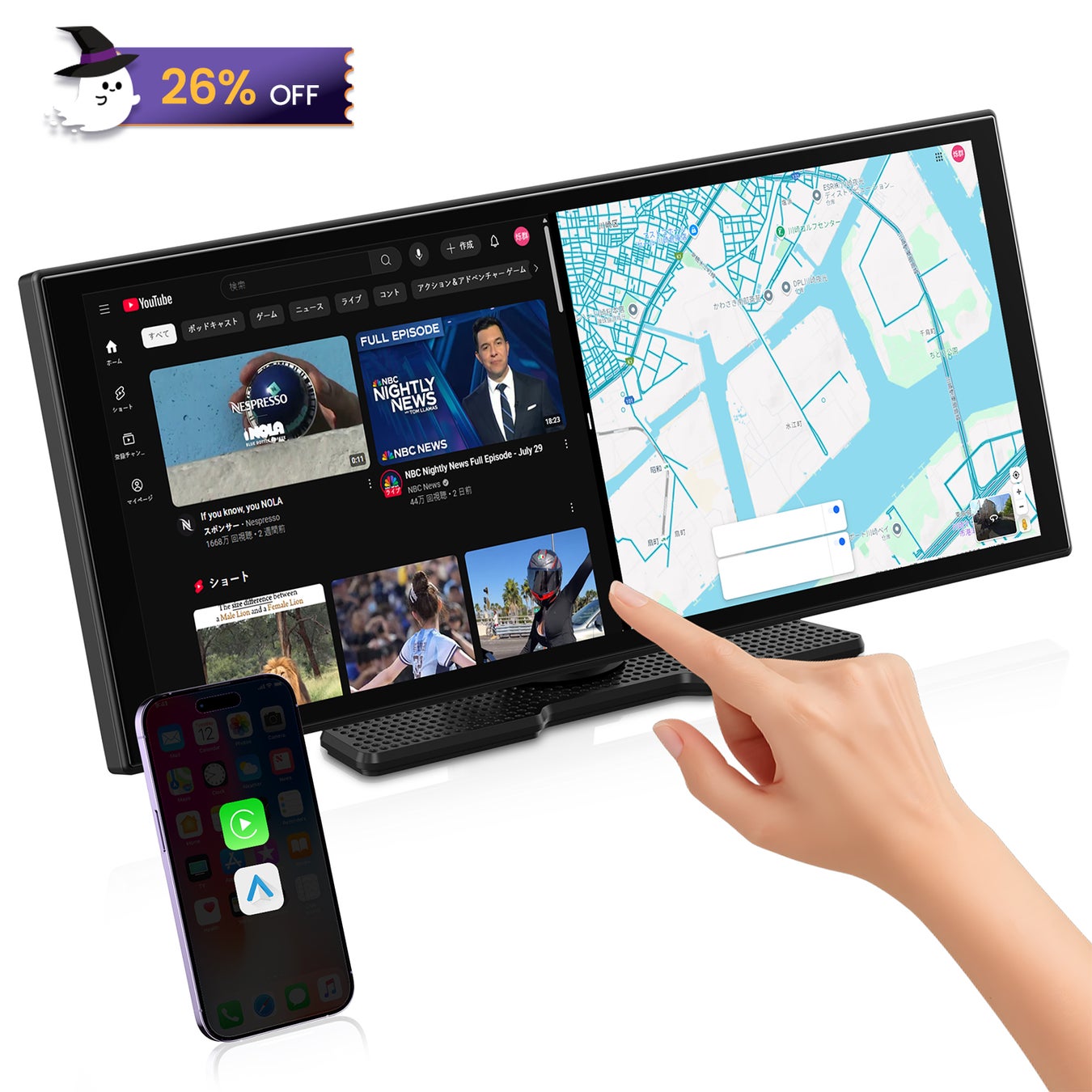 有線CarPlay/Android Autoをワイヤレス化し、分割表示でナビと音楽を同時に操作。
