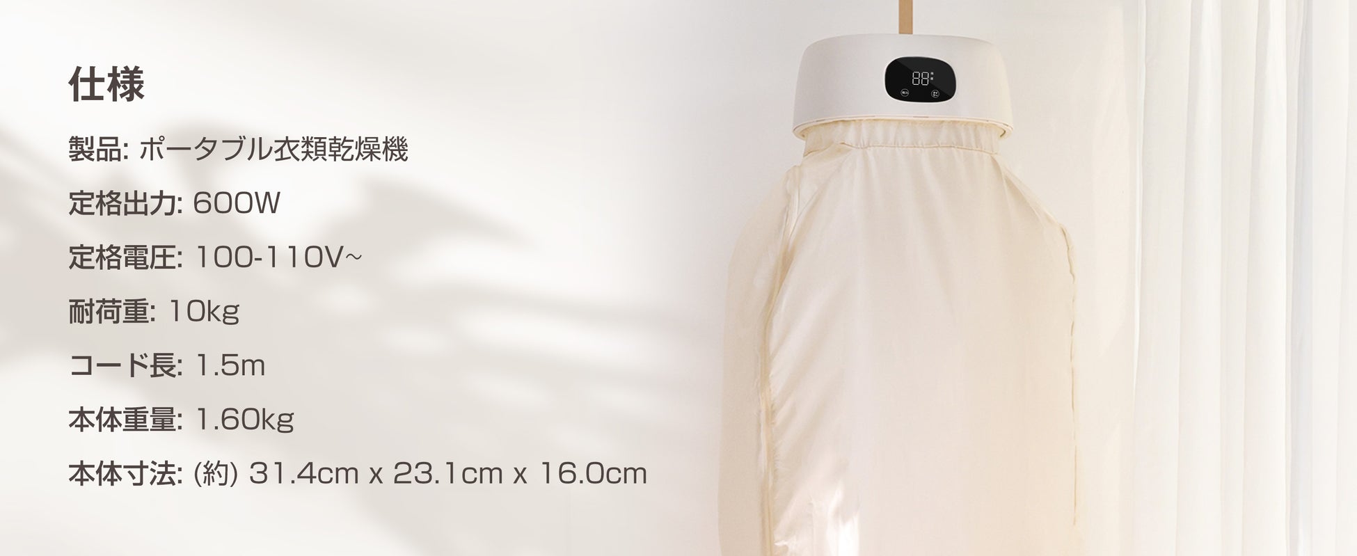 小型ながら耐荷重約10kgを実現!ポータブル衣類乾燥機