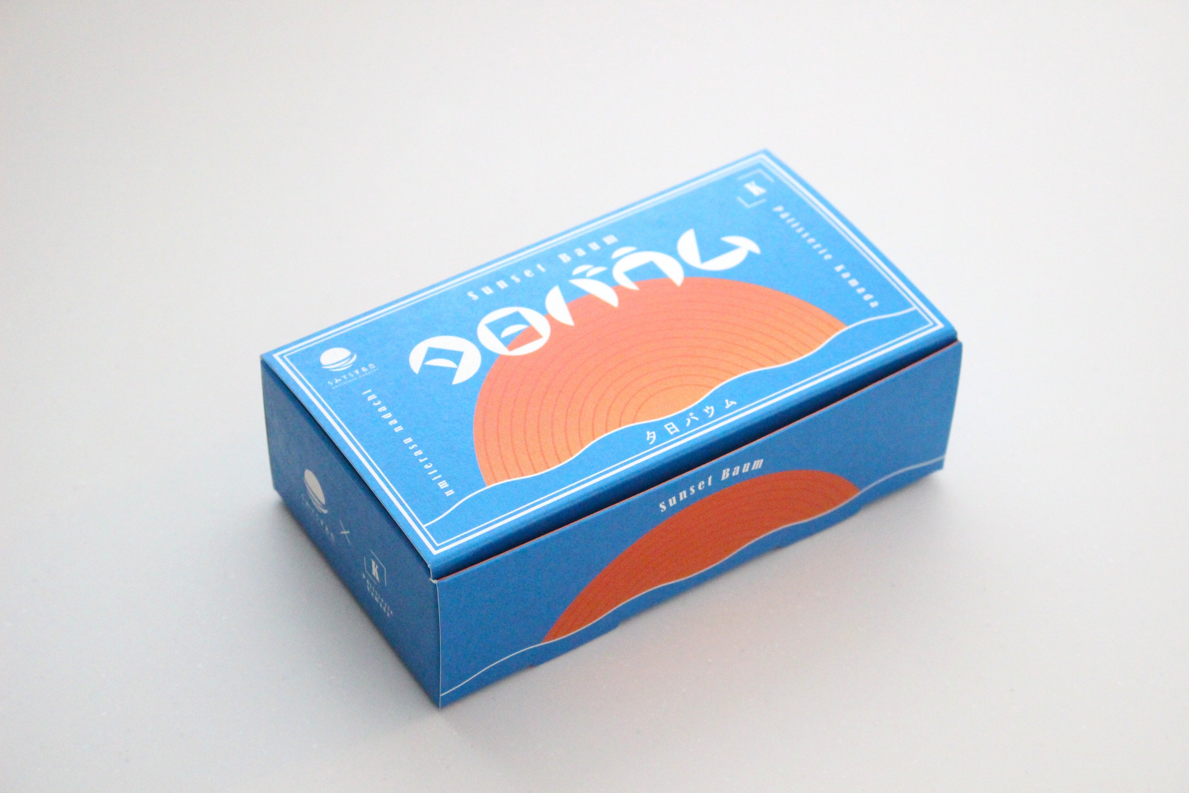 そのバウムクーヘンを名立の海に沈む夕日に見立て、夕日色をイメージした羊羹生地をコーティングすることで、より味わい深く仕上げました。
