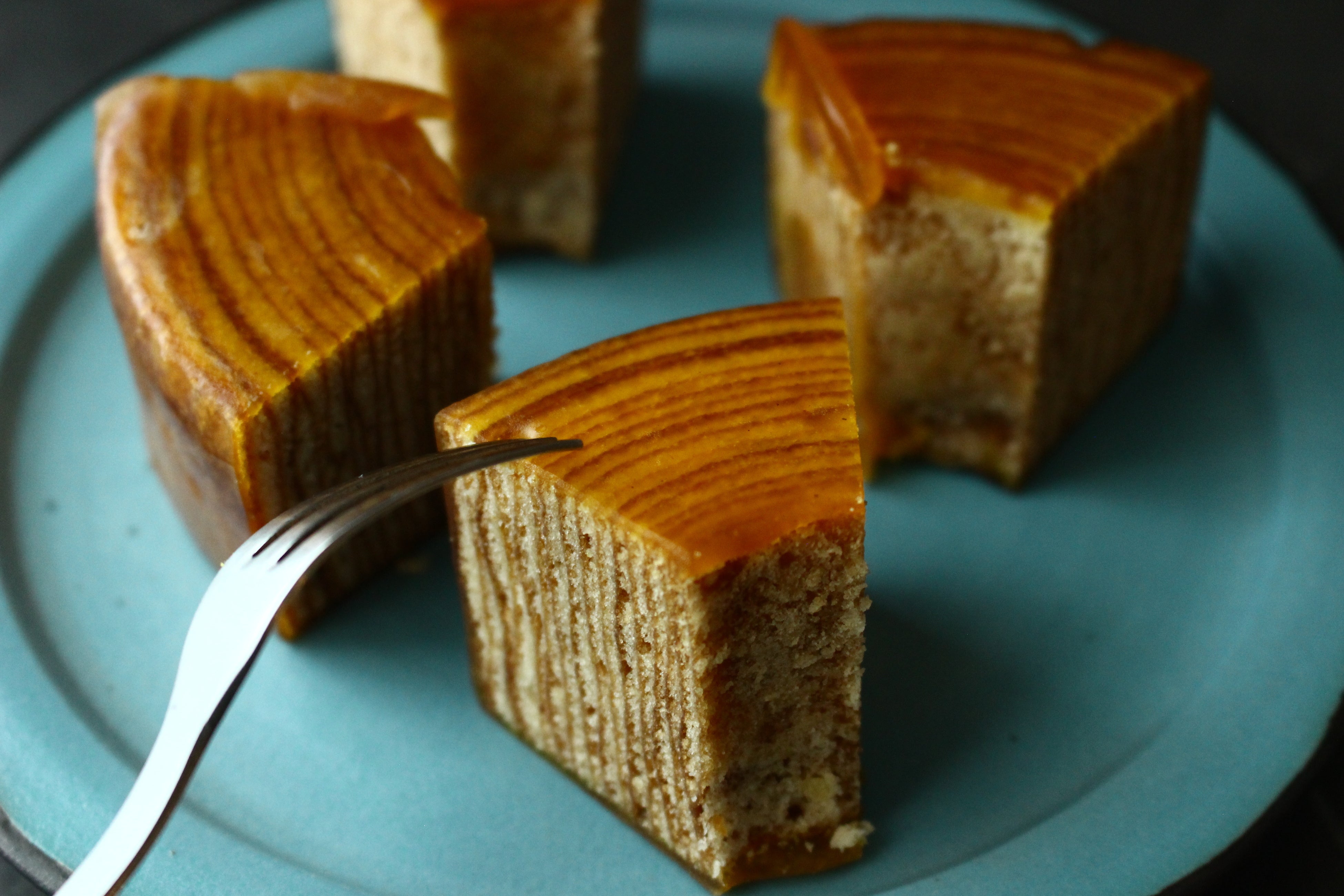 上越市の老舗菓子店・菓心亭かまだが一つひとつ手作りで焼き上げるバウムクーヘンは、どこか懐かしく、しっとりとしたやさしい味わい。