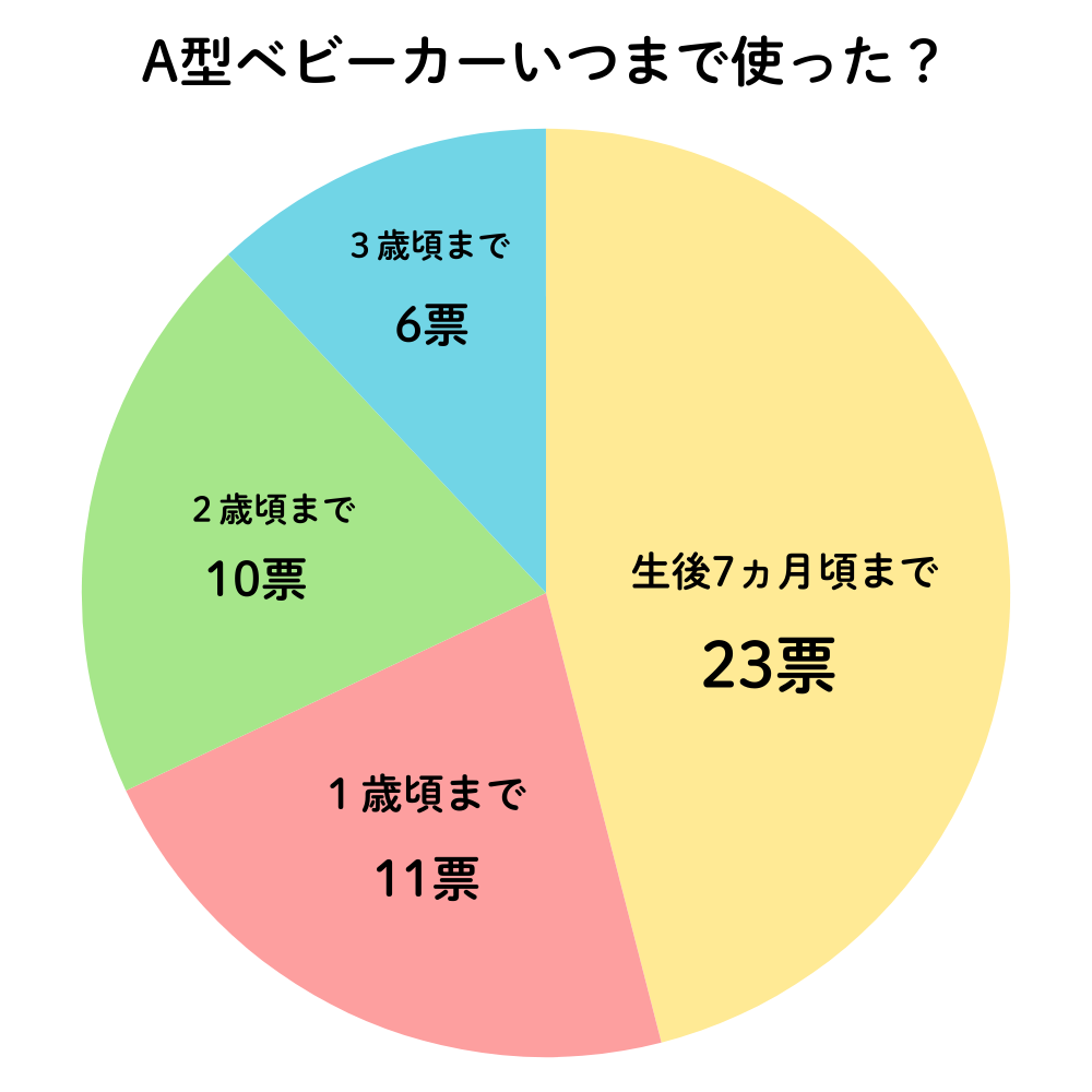 今回の調査結果から、A型ベビーカーは数ヵ月〜1年程度の使用にとどまるケースが半数以上ということが明らかになりました。
