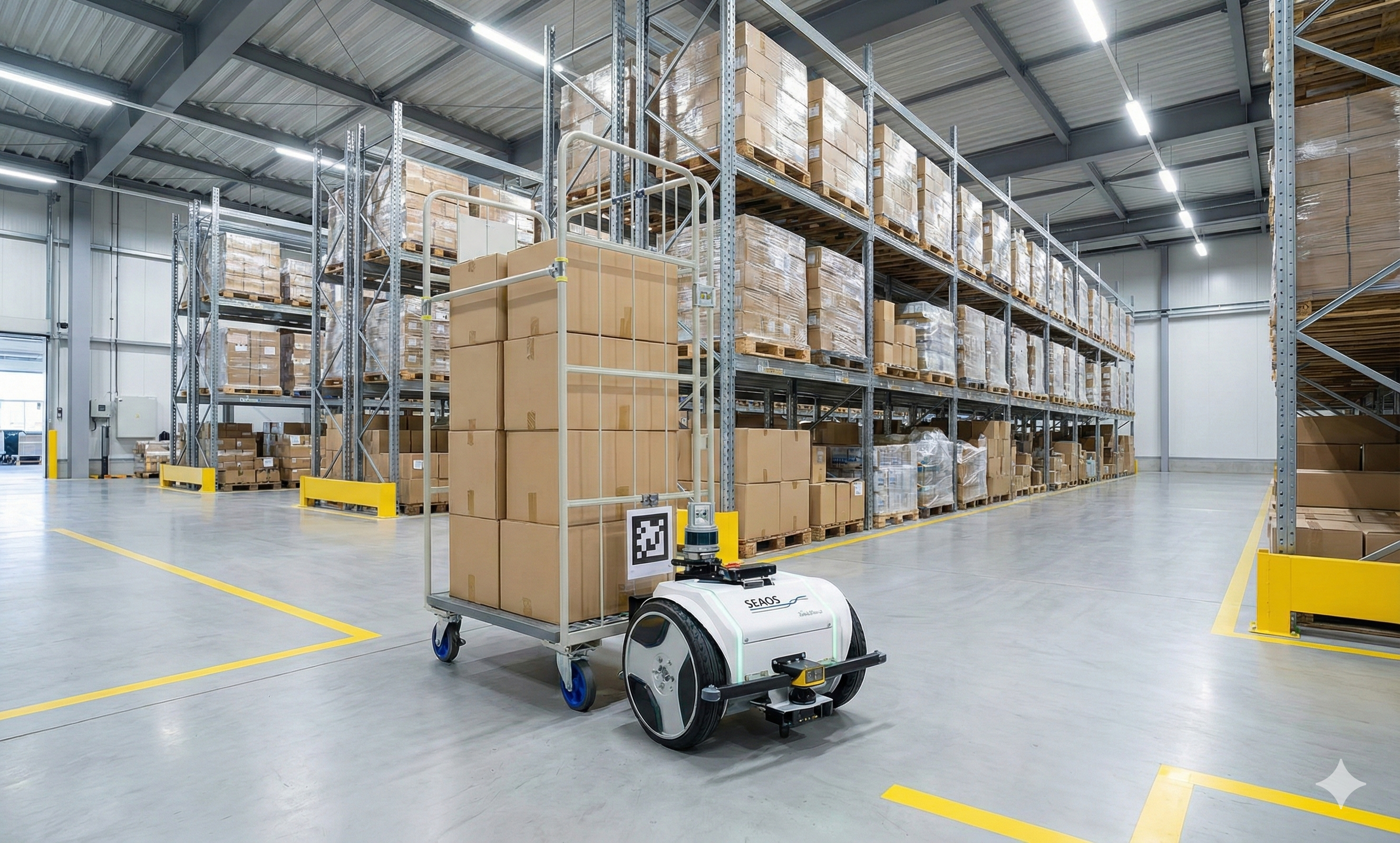 TUGBOT2は、現場でご利用中の既存の台車(6輪台車やカゴ車など)をそのまま牽引し、搬送を自動化する自律走行型ロボットです。